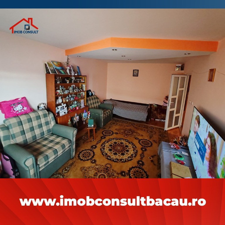 Iti doresti un cămin confortabil sau o investiție de succes? Acest apartament spatios din zona Mioritei, este alegerea perfectă! Suprafață utilă: 50 mp; Compartimentare: Decomandat; Living spatios,luminat natural cu acces catre balcon; Dormitor matrimonial cu spatiu generous de depozitare; Bucatarie mare, mobilata, utilata si organizata efficient; Baie functional, utilata; Hol generos și balcon – spațiu suplimentar pentru relaxare; Etaj 3/3 –blocul este dotat cu acoperis , si este izolat termic pe exterior; Incalzirea se realizeaza prin central termica pe gaz, cu radiatoare. Locuința se află într-o zonă liniștită, aproape de centre comerciale, restaurante, transport public și toate facilitățile necesare. Pentru mai multe informații și programări la vizionare, nu ezita să ne contactezi: - Corina: 0740 288 297; - Lacramioara: 0758 262 533, sau la sediul agenției noastre, Imob Consult Bacau, situat pe strada Banca Națională nr. 27 la intersecția cu Str. Neagoe Vodă, langa Irish Pub.