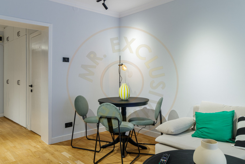 Amenajat in stil scandinav, cu tonuri neutre, accente de verde si turcoaz si mult lemn, spatiul este luminos si aerisit. Livingul te invita efectiv sa te asezi pe canapea, sa iti pui o cafea pe masuta de cafea si sa lasi lumina sa intre prin draperiile ample. Ai zona de dining, televizor, aer conditionat si suficient loc pentru serile cu prietenii sau pentru un maraton de seriale.