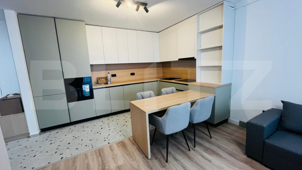 Blitz vă oferă spre vânzare un apartament lux cu 2 camere, situat pe strada Eroilor, într-o zonă foarte căutată datorită accesului excelent către magazine, stații de transport în comun și spații verzi. Apartamentul este poziționat la etajul 1 al unui imobil cu 8 etaje, într-o clădire îngrijită și bine construită. Acesta dispune de o suprafață utilă de 52.69 mp, la care se adaugă o terasa de 9.57 mp, ideala pentru relaxare. Compartimentarea semidecomandată este eficient realizată și se prezintă astfel: living modern cu bucătărie open-space, dormitor luminos, baie complet echipată și hol cu spații de depozitare. Finisajele și mobilierul sunt de categorie superioară, apartamentul avand bucătărie complet mobilată, dotată cu electrocasnice încorporabile, living amenajat modern, dormitor mobilat funcțional si baie complet utilata. Locuința este foarte luminoasă și oferă o atmosferă primitoare, fiind potrivită atât pentru locuit, cât și ca investiție cu randament excelent. Opțional se poate achiziționa un loc de parcare subteran la prețul de 9.000 euro. Nu ezitați să ne contactați pentru mai multe detalii sau pentru stabilirea unei vizionări! Cod ofertă / ID BLITZ: P169674 Id intern: P169674