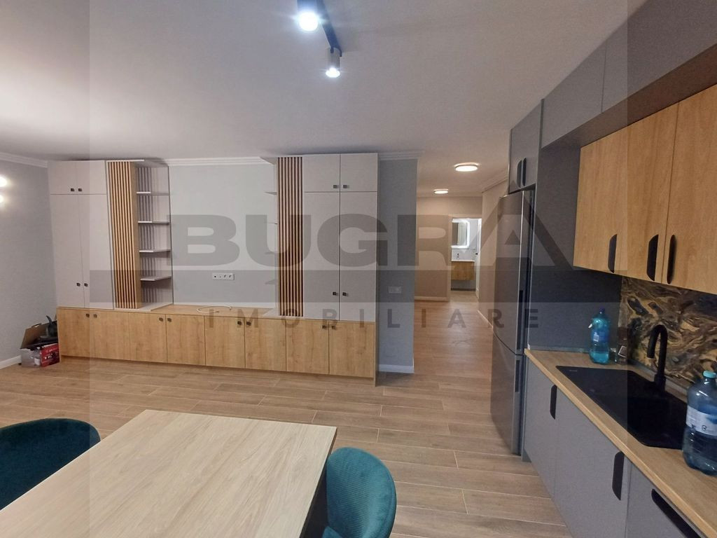 Bugra Imobiliare vă propune spre închiriere un apartament modern și luminos situat în Cluj-Napoca în imediata apropiere de magazinul Lidl. Proprietatea este ideală pentru cei care caută confort, funcționalitate și acces rapid către centrul orașului. Detalii spațiu: Compartimentare: living open-space cu bucătărie, dormitor separat, baie și terasa generoasa de 12 mp Orientare Sud-Vest — lumină naturală pe tot parcursul zilei Etaj intermediar, într-un imobil dotat cu lift Dotări și facilități: Loc de parcare subteran inclus Bucătărie complet utilată: mașină de spălat vase, cuptor cu microunde, frigider, plită și cuptor Mașină de spălat haine cu uscător Mobilier modern și finisaje de calitate Poziționarea în spatele magazinului oferă acces rapid către puncte de interes, transport și zone centrale. Disponibil imediat. Ideal pentru locuire confortabilă pe termen lung.