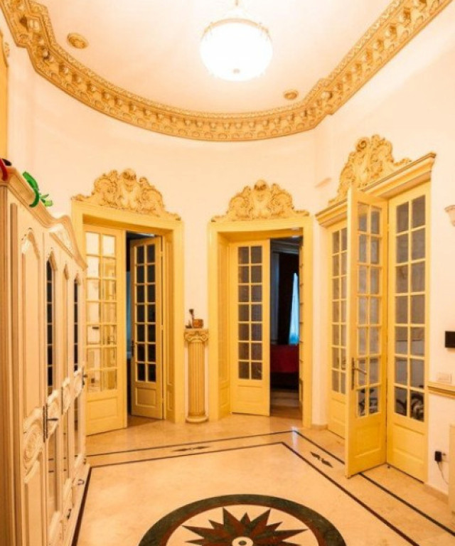 Blitz ofera spre achizitie un superb apartament de 6 camere, 200 mp utili, la parterul unei vile construita in anii 1900, cu o terasa de 25 mp, un garaj de 20 mp si 2 boxe, insumand 29 mp. Un living de 30 mp, care se poate extinde cu alta camera, de 24 mp, si inca 4 alte dormitoare, cele 2 bai si bucataria fac din acest apartament un mic conac, pretabil si pentru locuinta, dar si pentru un birou luxos. Dupa cum se poate vedea in imagini, aceasta proprietate ne introduce in atmosfera boiereasca de altadata, prin camerele mari, tavanele de 5.5 m, si finisajele folosite - marmura, foita de aur, etc. Terasa este perfecta pentru zilele de vara, la fel si curtea interioara. Strada este plina de astfel de proprietati, inclusiv ambasade. Cod ofertă / ID BLITZ: P5107 Id intern: P5107