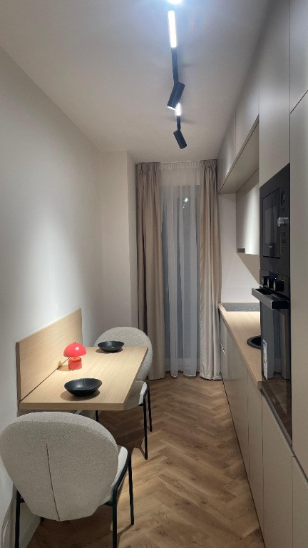 Vanzare apartament lux in bloc nou, constructie noua in Cluj-Napoca, semicentral Marasti. Apartamentul face parte dintr-un Ansamblu de locuinte modern construite, cu toate facilitatile de la magazin, spatii verzi, loc de joaca, in apropiere de scoala, mijloc de transport. Suprafata apartament generoasa 58 mp utili la care se adauga un balcon 11 mp placat cu gresie si balustrada din sticla securizata, etaj 1; Compartimentare: semidecomandat cu hol, bucatarie separata, living, dormitor si balcon. Apartamentul nu a fost locuit, totul este nou: finisaje, mobilier, electrocasnice incorporabile : masina de spalat vase, rufe, frigider, hota, plita, cuptor, jaluzele electrice, aer conditionat, televizor, incalzire prin pardoseala, conform pozelor se vinde. Pret de vanzare 220.000 euro, optional se poate cumpara si o parcare subterana la pretul de 20.000 euro. Ocupabil imediat. Se intermediaza prin Agentia Record Imobiliare comision 2%.