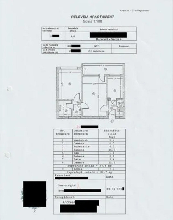 Se oferă spre vânzare un apartament de 2 camere, luminos și bine compartimentat, situat într-o zonă foarte apreciată din Sector 4, pe Strada Străduinței. Ideal atât pentru locuit, cât și ca investiție. Detalii generale: • Suprafață totală: 52 mp (inclusiv balcon) • Suprafață utilă: 51,70 mp • Compartimentare: semidecomandat • Etaj: 5 din 10 • Bloc cu lift • An construcție: 1965 (înainte de 1977) Caracteristici și beneficii: • Balcon deschis, generos, cu vedere panoramică • Apartament luminos, cu orientare bună • Mobilat decent, parțial modernizat • Ferestre termopan la dormitor • Ușă metalică la intrare • Parchet clasic din lemn în camere • Baie cu fereastră pentru aerisire naturală • Bucătărie spațioasă, cu loc pentru luat masa • Spații de depozitare bine gândite: 2 debarale + 1 cămară Localizare excelentă: • Grădiniță și școală la mai puțin de 100 m • Piață agroalimentară la sub 150 m • Supermarketuri la mai puțin de 500 m • Stație autobuz la 3 minute de mers pe jos • Stație metrou la aproximativ 15 minute • Acces rapid către centru Preț: 73.760 EUR