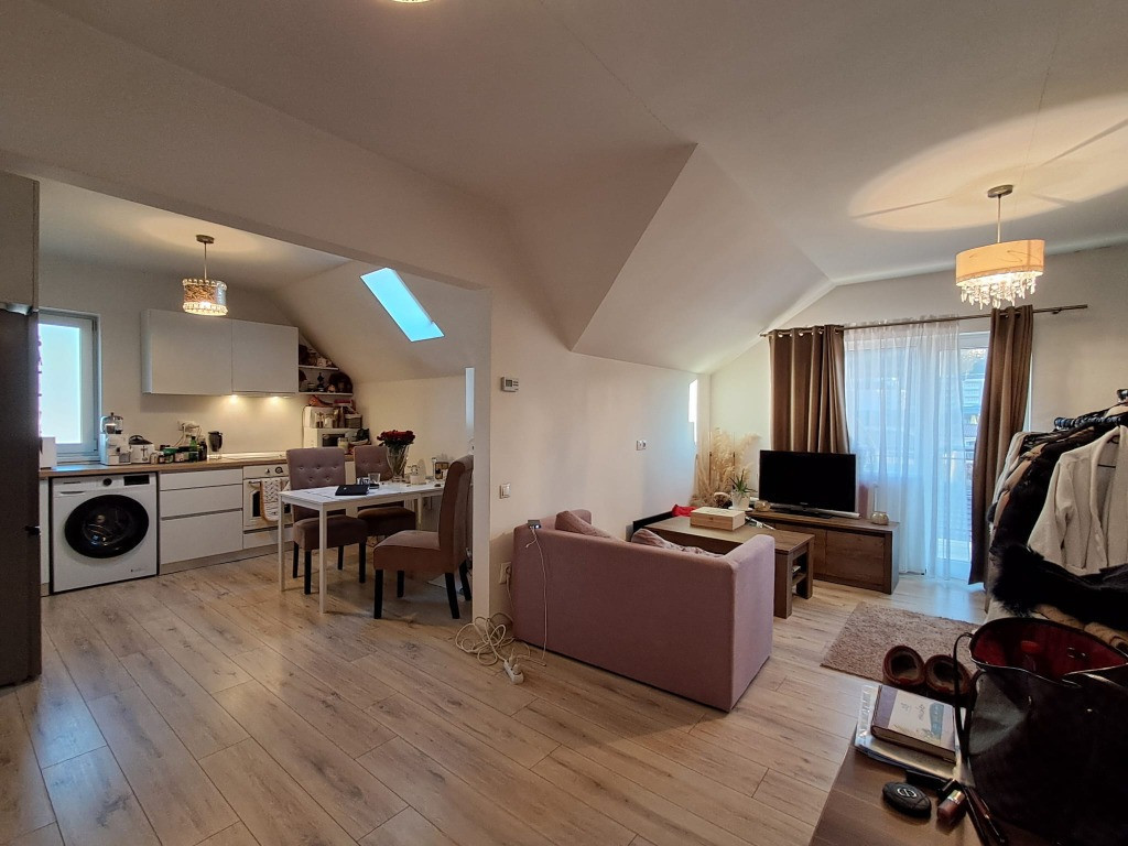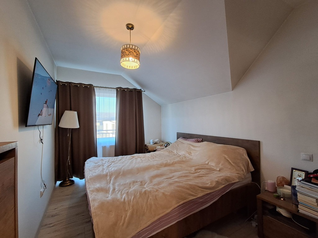 Apartament 2 camere situat in Floresti, zona Terra. Suprafata utila 46,17 mp inscrisi in cartea funciara+ 2 balcoane de 6,29 mp+6,29 mp= total 58,75 mp. Compartimentare din Cartea funciara: camera de zi, bucatarie, bucatarie, baie cu geam, hol; orientare SN, etaj 3 ( mansarda), an constructie 2019. Parcare privata in incinta inchisa inclusa in pret; Se vinde complet mobilat si utilat cu electrocasnice noi, pret de vanzare 81.000 euro neg. Se vinde prin agentie imobiliara comision 2%.