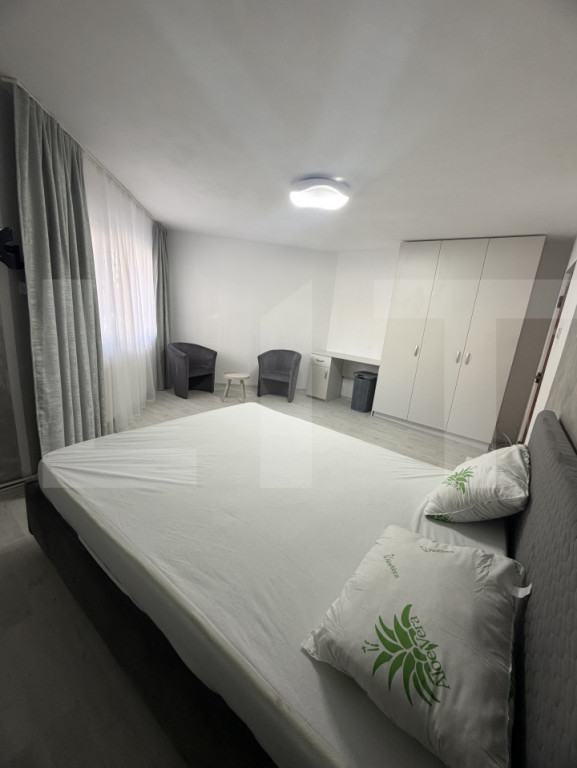 Apartament Modern & Proaspăt Renovat – Zonă Centrală Vă oferim spre închiriere un apartament cu un design contemporan, recent renovat, situat într-o locație privilegiată, în inima orașului. Locuința este la prima închiriere după renovare, oferind un mediu curat, luminos și extrem de primitor. Detalii și Dotări: Mobilier & Amenajare: Apartamentul este mobilat și utilat complet modern. Dormitorul este spațios, dotat cu pat matrimonial generos, texturi catifelate și pereți cu finisaje decorative premium. Bucătărie: Complet echipată, cu electrocasnice noi (aragaz, cuptor, hotă, frigider,cuptor cu microunde), zonă de dining și spații de depozitare eficiente. Confort Termic: Dotat cu centrală proprie și calorifere noi, asigurând un control total asupra temperaturii și costuri optimizate de întreținere. Baie: Amenajată cu gust, dotată cu mașină de spălat rufe și finisaje moderne. Localizare & Facilități: Situat în zona centrală, apartamentul oferă acces pietonal rapid către toate punctele de interes: Supermarketuri, piețe, diverse magazine,farmacii si restaurante la doar câteva minute distanță. Cod ofertă / ID BLITZ: P166587 Id intern: P166587