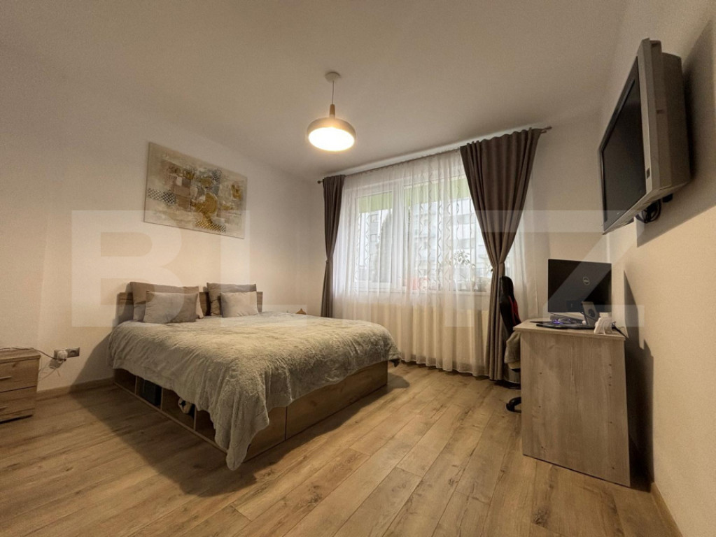 Blitz propune spre vânzare un apartament cu 2 camere decomandate, situat într-un bloc nou, într-una dintre cele mai apreciate zone ale orașului – Gheorgheni, în imediata apropiere a Bazei Sportive Gheorgheni și la doar câteva minute de Iulius Mall. Apartamentul are o suprafață utilă de 58 mp, beneficiază de o compartimentare foarte bine gândită și este compus din: • living luminos • dormitor spațios • bucătărie separată • baie • hol Este situat la parterul unui imobil nou cu 9 etaje, având orientare vestică, ceea ce oferă lumină naturală plăcută pe parcursul zilei. Se vinde complet mobilat și utilat modern, exact așa cum se prezintă în fotografii, fiind gata de mutare sau ideal pentru investiție. Încălzirea este realizată prin centrală termică proprie și calorifere, asigurând confort termic și costuri eficiente. ✔ Un avantaj major: în preț sunt incluse două locuri de parcare subterane, un beneficiu extrem de rar și valoros în zonă. Zona este liniștită și verde, ideală pentru activități în aer liber, sport sau plimbări, cu acces rapid la: • Baza Sportivă Gheorgheni • Iulius Mall • mijloace de transport în comun • școli, magazine și alte facilități urbane ???? Pentru mai multe detalii sau programarea unei vizionări, vă așteptăm cu drag! Cod ofertă / ID BLITZ: P163743 Id intern: P163743