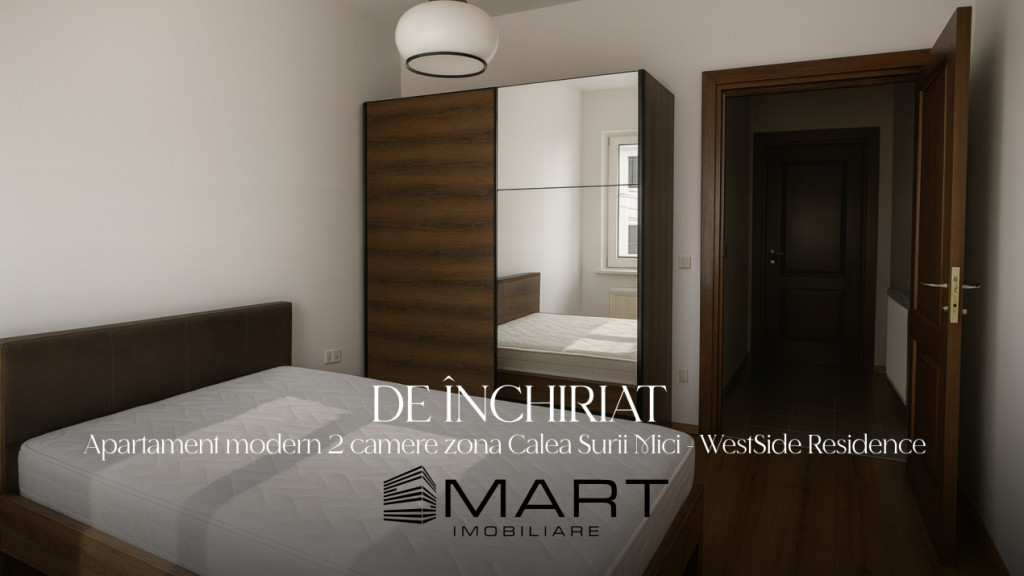 Smart inchiriaza un apartament cu 2 camere in cartierul WestSide Residence, la etajul 3/4 cu al unui bloc cu lift, compus din living cu bucatarie openspace, dormitor, baie, hol si balcon. Apartamentul este mobilat si utilat complet si se da cu un loc de parcare inclus in pret. In zona gasim statie de autobuz si magazin. Precizati la telefon ca ati vazut oferta cu ID : P17818. Id intern: P17818