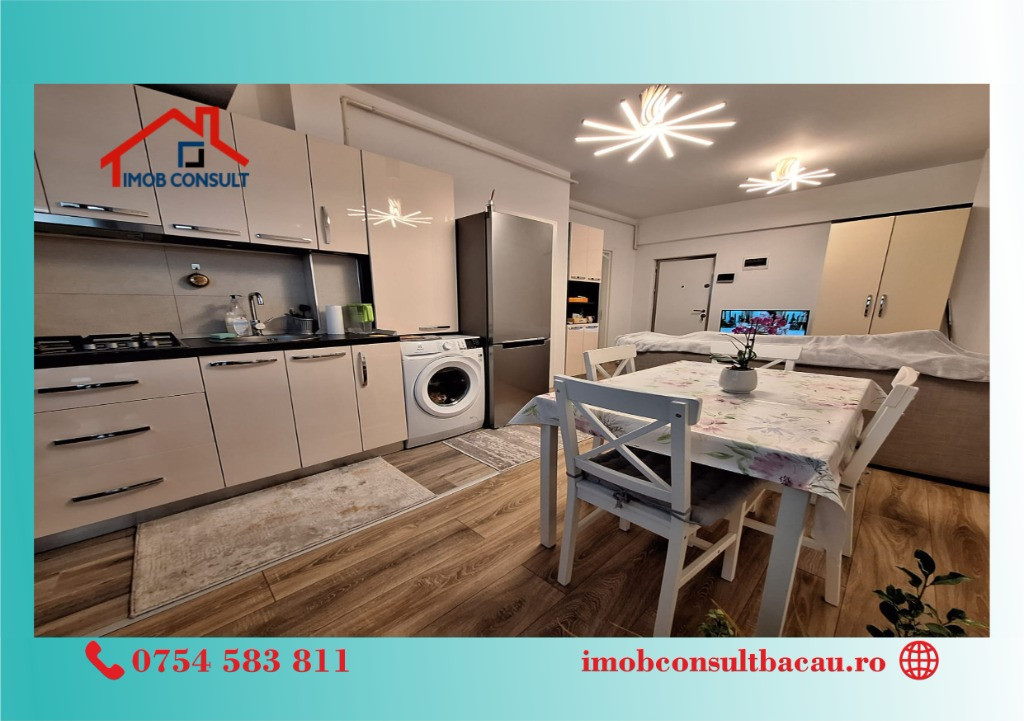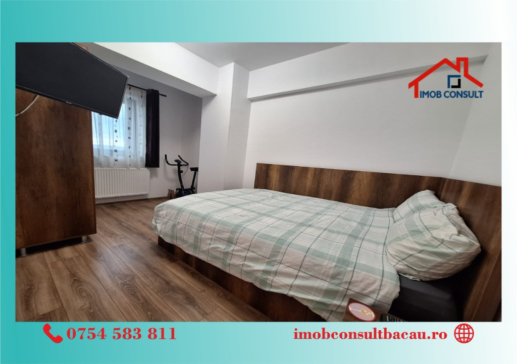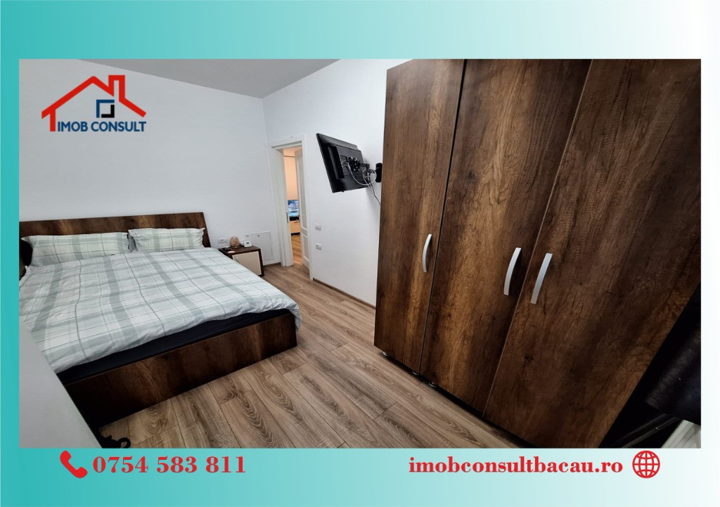Imob Consult Bacau vă propune spre închiriere un apartament modern cu 2 camere și balcon, situat la etajul 2 al unui bloc nou de pe strada 22 Decembrie, imobil dotat cu lift și izolație termică. Apartamentul se închiriază complet mobilat și utilat, fiind pregătit să ofere confortul dorit încă din prima zi. Designul modern, spațiul generos și dotările actuale îl fac ideal pentru un cuplu sau pentru persoane care caută un ambient funcțional și plăcut. Dotări și facilități: • Centrală termică proprie ; • Aer condiționat; • Balcon spațios pentru momente de relaxare ; • Mobilier și electrocasnice modern. Blocul este izolat termic, oferind un plus de eficiență energetică și confort pe tot parcursul anului. Pentru vizionari si informatii suplimentare contacteza-ne la nr. de tel: - Cosmin: 0754 583 811; - Corina: 0740 288 297, sau la sediul agenției noastre, Imob Consult Bacau, situat pe strada Banca Națională nr. 27 la intersecția cu Str. Neagoe Vodă, langa Irish Pub.