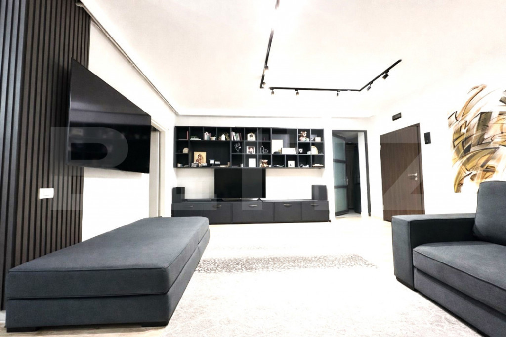 Bucătăria este nouă, complet integrată în zona de living, oferind un spațiu funcțional și aerisit. Finisajele moderne, mobilierul în tonuri neutre și iluminatul atent ales creează o atmosferă primitoare și rafinată.