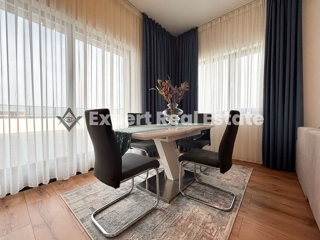 Va propunem spre inchiriere un apartament luxos, spatios si luminos, de 3 camere, complet mobilat si utilat foarte,bine compartimentat, ideal pentru un cuplu sau pentru oricine isi doreste un spatiu generos, confortabil si complet echipat. Situat in nordul Capitalei, intr-un ansamblu rezidential cu spatii verzi, loc de joaca pentru copii, foisoare, zona pentru barbueque si teren de baschet, este combinatia ideala intre liniste, spatii verzi si accesibilitate, perfecta atat pentru familii, cat si pentru cei care doresc sa fie aproape de oras dar sa evite aglomeratia urbana. Apartamentul se afla la etajul 3 al unui bloc cu lift finalizat in anul 2024, cu o suprafata totala de aproximativ 150 mp si 100 mp utili dispune de 3 camere, care includ 2 dormitoare si un living modern si spatios. Camerele sunt luminoase, cu ferestre mari care permit luminii naturale sa inunde spatiul, creand o atmosfera calda si primitoare. Livingul este un spatiu deschis si generos, ideal pentru relaxare, mobilat modern, cu un design elegant si functional. Cele doua dormitoare sunt suficient de mari pentru a oferi confort si intimitate. Unul dintre dormitoare poate fi folosit ca dormitor matrimonial, iar celalalt ca dormitor pentru copii sau birou, in functie de nevoile viitorilor chiriasi. Bucataria este complet echipata si dotata cu toate electrocasnicele necesare, inclusiv aragaz, cuptor, firgider si masina de spalat vase. Baile sunt echipate cu obiecte sanitare de calitate, oferind un spatiu curat si bine igienizat. Holul apartamentului este larg, oferind spatiu de depozitare suplimentar si un acces facil catre toate camerele. Piesa de rezistenta a apartamentului este terasa de 50 mp, un spatiu de exterior generos, perfect pentru momentele de relaxare sau pentru a organiza mese in aer liber. Terasa se poate amenaja in functie de preferintele viitorilor chiriasi. Apartamentul beneficiaza de centrala proprie, cu incalzire in pardoseala, asigurand un control eficient asupra costurilor de incalzire. Tamplaria este termopan, tripan 7 camere. Doua locuri de parcare private, sunt incluse in pret. Disponibilitate imediata. Pentru mai multe detalii si vizionari, va stam la dispozitie!