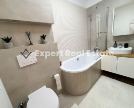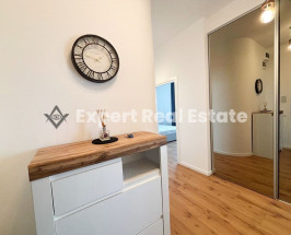 Bucataria este complet echipata si dotata cu toate electrocasnicele necesare, inclusiv aragaz, cuptor, firgider si masina de spalat vase. Baile sunt echipate cu obiecte sanitare de calitate, oferind un spatiu curat si bine igienizat. Holul apartamentului este larg, oferind spatiu de depozitare suplimentar si un acces facil catre toate camerele.