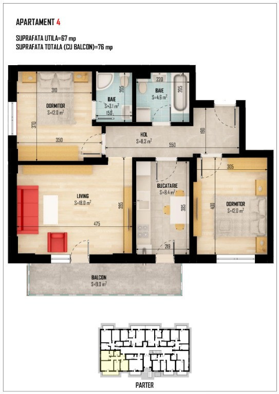 Suprafața utilă 75 m²