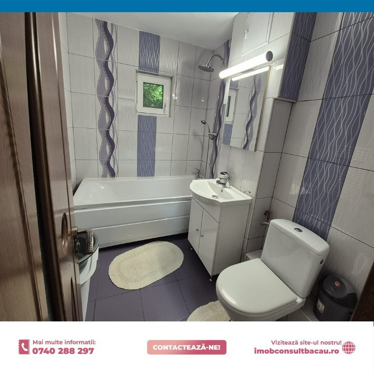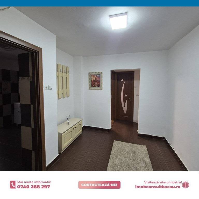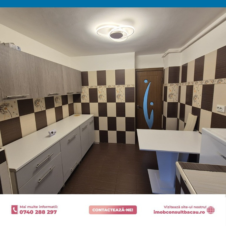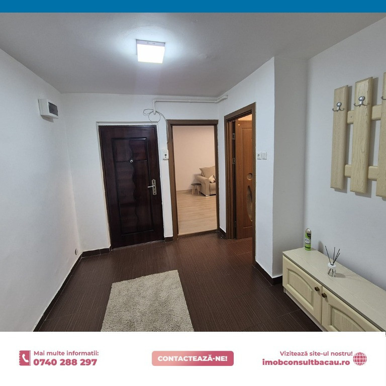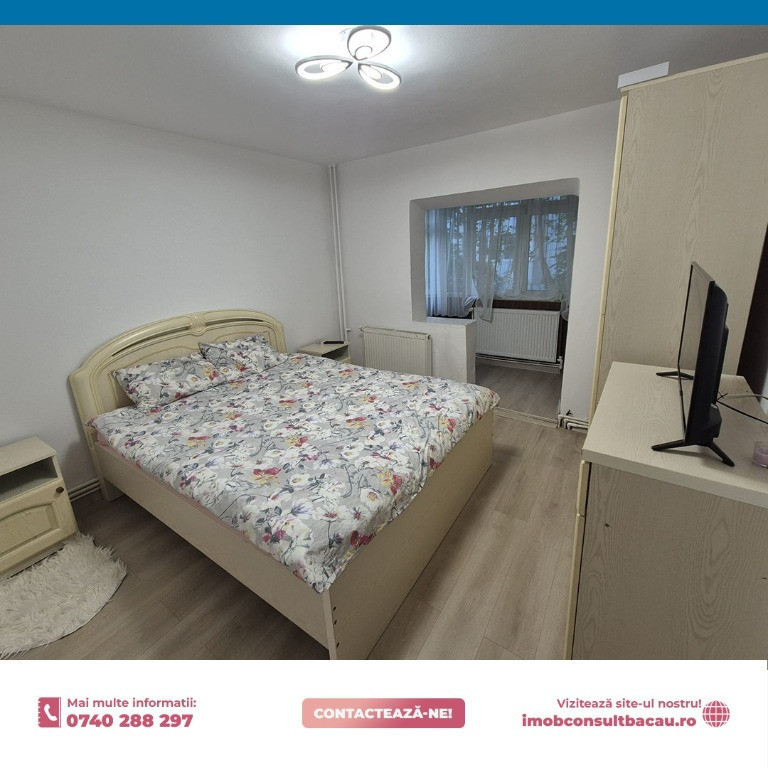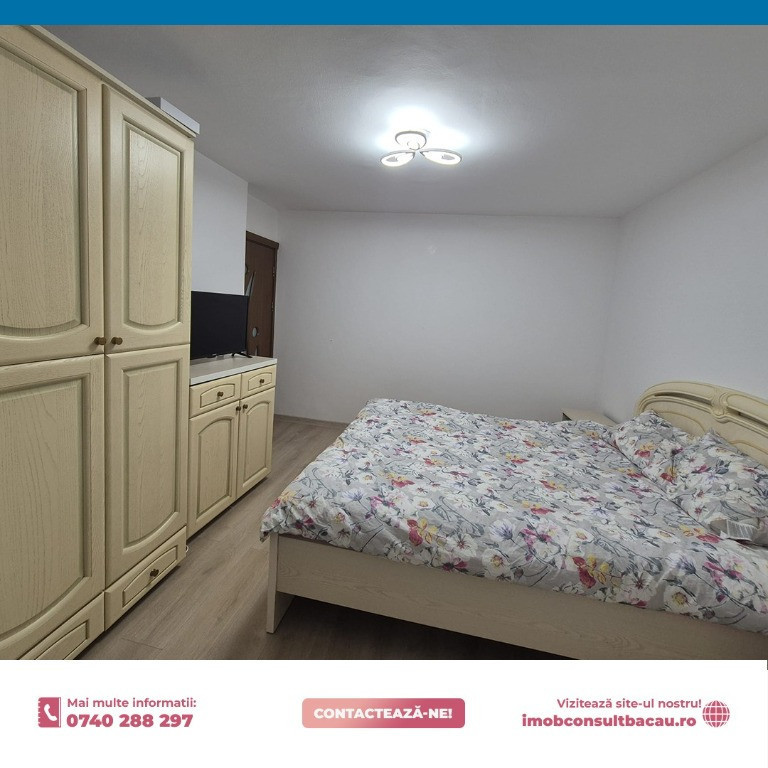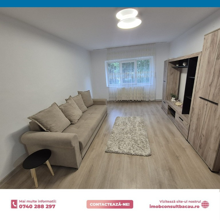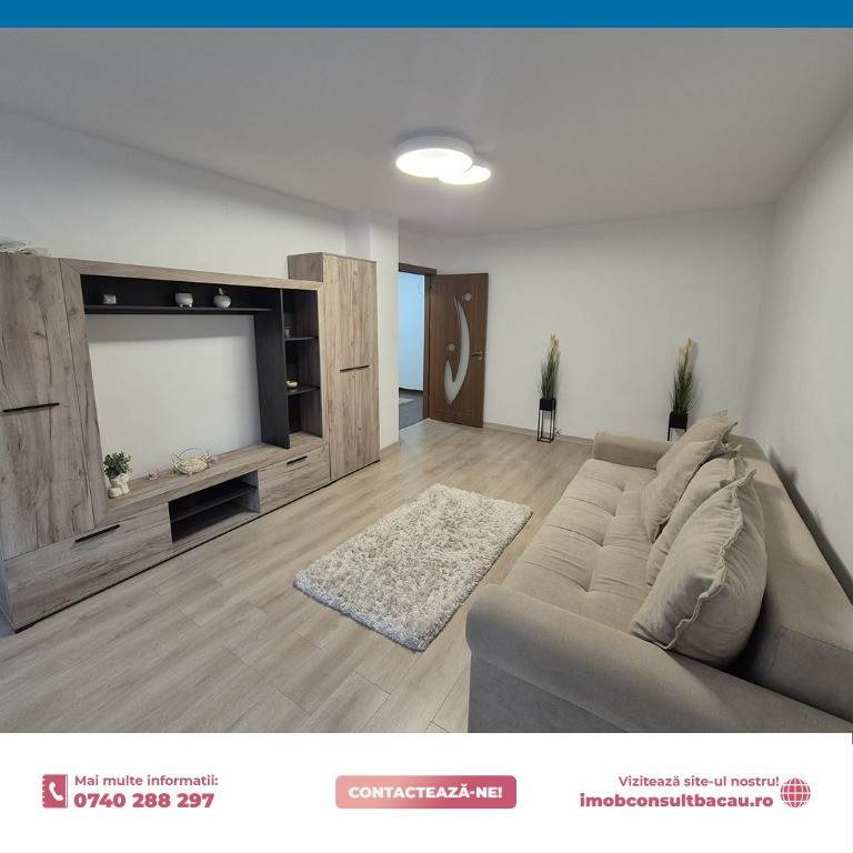 Echipa Imob Consult Bacau, va prezinta spre inchiriere un apartament cu doua camere , situat la etajul 1 al unui imobil cu 7 etaje din zona de nord a orasului. Avantaje: - Modern; - 2 camere; - 2 balcoane ; - Complet mobilat si echipat. Te așteaptă un apartament modern complet mobilat si echipat, gata să devină acasă. Situat într-o zonă excelentă, aproape de punctele de interes ale orașului, acest apartament îți oferă tot confortul de care ai nevoie. Perfect pentru o familie sau un cuplu care își dorește confortul unui apartament situate într-o zonă liniștită și bine conectată! Programează o vizionare și fii primul care locuiește aici! - Corina: 0740 288 297; - Lacramioara: 0758 262 533, sau la sediul agenției noastre, Imob Consult Bacau, situat pe strada Banca Națională nr. 27 la intersecția cu Str. Neagoe Vodă, langa Irish Pub.
