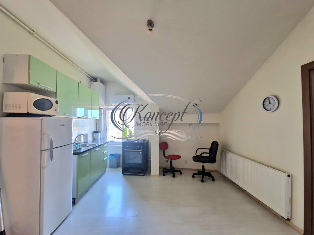 Koncept Imobiliare propune spre inchiriere un apartament modern, localizat in cartierul Zorilor, in apropierea Spitalului de Recuperare. Amplasat la mansarda unui bloc rezidential, apartamentul beneficiaza de o pozitie excelenta, intr-o zona linistita, dar foarte aproape de universitati, transport public, magazine, parcuri si institutii bancare. Suprafata de 60 mp utili este organizata intr-un living cu bucatarie open space, doua dormitoare, hol si baie. Proprietatea dispune atat de o terasa individuala, cat si de acces la o terasa comuna, ideale pentru momente de relaxare sau activitati in aer liber. Apartamentul se inchiriaza complet mobilat si utilat, cu finisaje moderne si sistem de incalzire prin centrala proprie si calorifere. Atmosfera interioara este calda si primitoare, adaptata unui stil de viata activ si urban. Locuinta este recomandata unui cuplu sau studentilor, datorita pozitiei sale strategice si a accesului rapid la multiple puncte de interes din zona. Suprafata generoasa si compartimentarea eficienta reprezinta elemente care diferentiaza aceasta oferta pe piata inchirierilor. Pentru informatii complete, programarea unei vizionari sau pentru a afla oferta noastra completa va stam la dispozitie telefonic, prin e-mail sau la sediul agentiei noastre, pe str. Aviator Badescu, nr. 19, Cluj-Napoca. Id intern: P20731