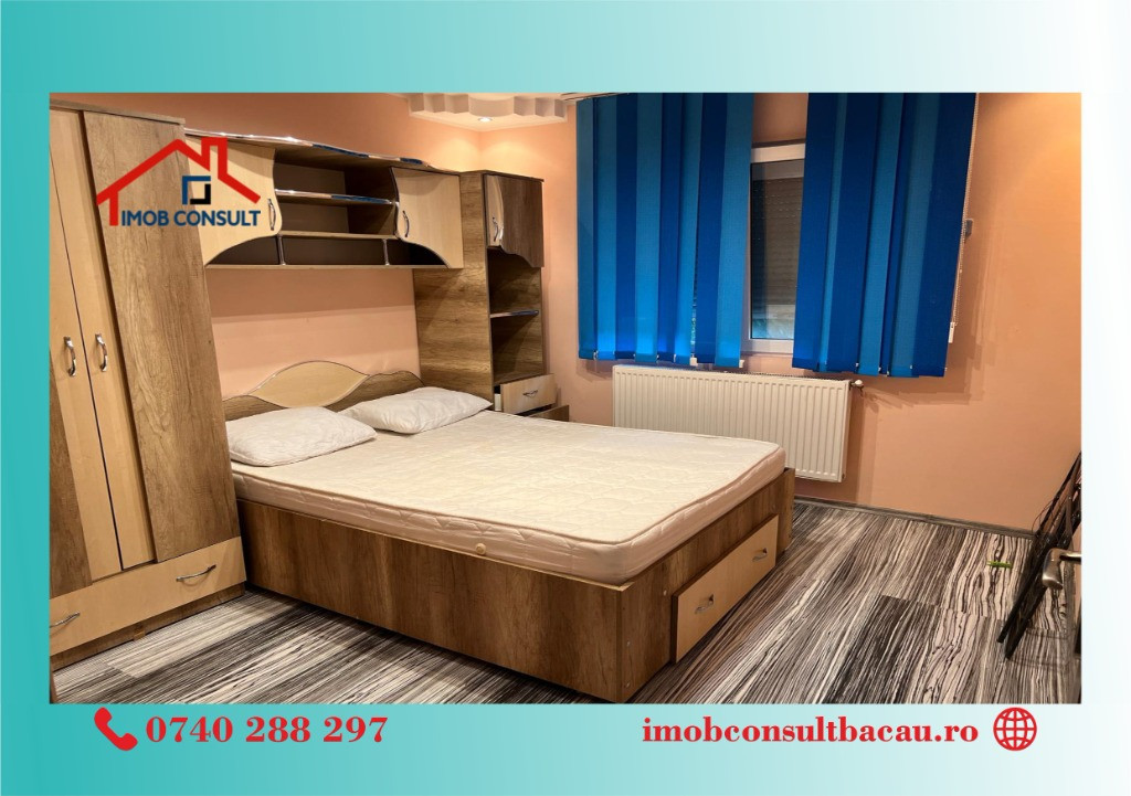 Echipa Imob Consult va recomanda spre inchiriere apartament 3 camere, situat la 5 minute de Orizont. Suprafata generoasa de 65 mp utili a acestui apartament il fac ideal pentru o familie sau cuplu, avand mijloace de transport in imediata proximitate. Este complet utilat si mobilat, avand chiar si obloeane sub forma de rulouri la geamuri. Avem cheile in agentie, asadar hai la sediul nostru sa stabilim o vizionare! Cu siguranta iti va placea! Pentru orice informatie nu ezita sa ma contactezi tel. 0740.288.297, tel 0758 262 533, Sau ne gasesti la biroul IMOB CONSULT situat pe strada Banca Nationala, nr. 27, intersectia Neagoe Voda, langa Irish Pub.