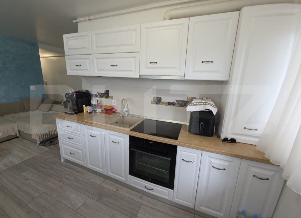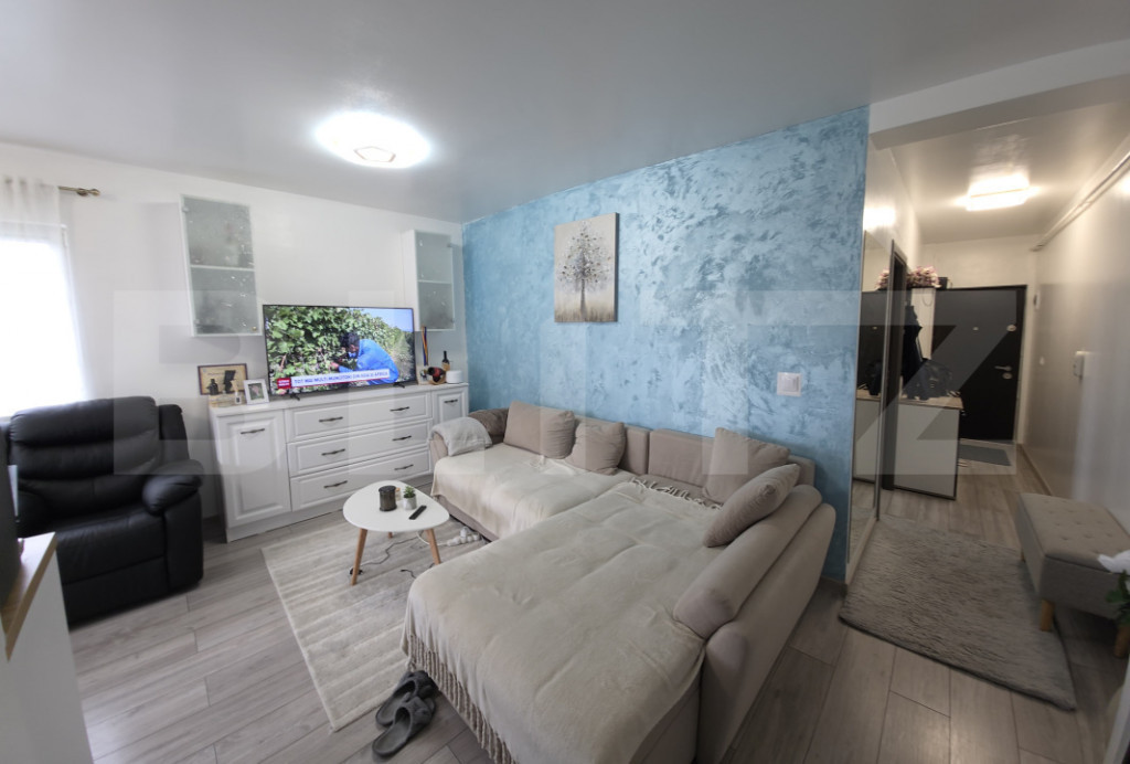 BLITZ vă propune spre vânzare un apartament modern, complet mobilat, situat într-un bloc nou, într-o zonă liniștită. Locuința este amplasată la etajul 2 și beneficiază de o compartimentare practică: bucătărie open-space cu living, dormitor separat și baie cu geam, un detaliu rar întâlnit care aduce un plus de confort. Apartamentul a fost recent renovat, se vinde complet mobilat, exact ca în poze, și este dotat cu toate utilitățile necesare. Un mare avantaj îl reprezintă locul de parcare înscris în CF, care oferă siguranță și comoditate. Ideal pentru locuit sau ca investiție, acest apartament este gata să devină acasă pentru cineva care caută confort, stil și liniște. Cod ofertă / ID BLITZ: P149872 Id intern: P149872