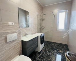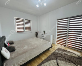 Locuinta se inchiriaza complet mobilata si utilata cu mobilier de bucatarie din MDF cu electrocasnice incastrate cum ar fi masina de spalat vase, plita electrica, cuptor electric, frigider, camera de zi amenajata cu canapea si mobilier specific cu multiple spatii de depozitare, baia amenajata ca atare si dormitorul echipat corespunzator.