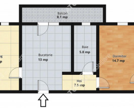 Suprafata utila a locuintei este de 59 mp si este compartimentata dupa cum urmeaza: living 18 mp, dormitor 14.7 mp, bucatarie 13 mp, baie 5.8 mp, hol 7.5 mp.