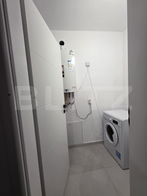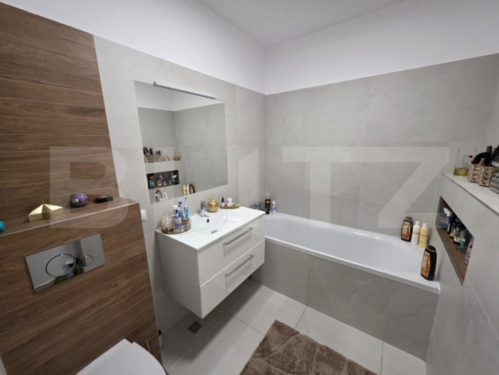 Vă propunem spre vânzare un apartament cu 2 camere, cu o suprafata de 54.5 mp spațios și luminos, situat într-un imobil nou, într-o zonă liniștită și verde. Apartamentul este ideal atât pentru locuit, cât și pentru investiție Compartimentare și dotări: Living open- space + bucătărie complet utilată Zona de zi este amenajată cu un colțar generos si masă de dining . Bucătăria este modernă, echipată cu aragaz, cuptor, hotă, multiple spații de depozitare și blat generos de lucru. Dormitor matrimonial Dotat cu pat dublu cu tăblie tapițată, noptiere moderne și ferestre mari ce oferă lumină naturală din plin. Baie modernă Amenajată elegant, cu finisaje ceramice mari, cadă, lavoar cu dulapuri suspendate și multiple spații de depozitare. Hol generos Cu dulap mare cu uși glisante și oglinzi, oferind spațiu suficient pentru haine și încălțăminte. Balcon spațios 4,2 mp Perfect pentru relaxare, cu vedere spre o zonă verde și liniștită. Cameră tehnică / spălătorie Dotată cu centrală termică proprie și mașină de spălat.Incalzire in pardoseala. Loc de parcare propriu, situat lângă bloc – confortabil și sigur, fără costuri suplimentare. Cod ofertă / ID BLITZ: P152776 Id intern: P152776