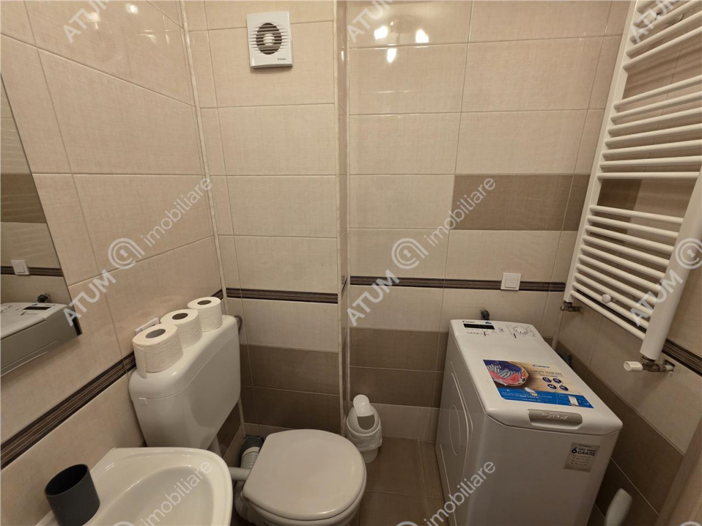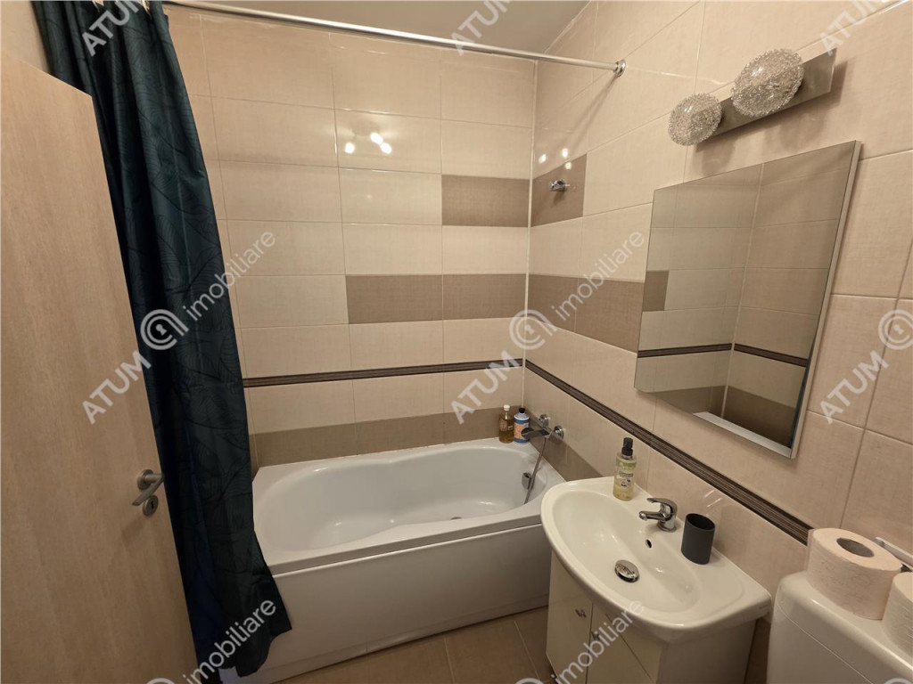 Va oferim spre inchiriere un apartament modern cu 2 camere, balcon si loc propriu de parcare, situat intr-o zona rezidentiala linistita, ansamblul Balanta din Sibiu. Apartamentul are o supratafa utila de 49 mp, fiind compartimentat astfel: living generos cu bucatarie de 28 mp, dormitor 14 mp, baie 4 mp, hol 4 mp, separat avand si un balcon deschis de 8 mp. Locuinta detine ca dotari usa de acces din metal, usi din lemn la interior, tamplarie PVC si geamuri termopane, parchet laminat, gresie, faianta, centrala termica proprie, calorifere. Se preda mobilat si utilat complet cu electrocasnice (televizor, masina de spalat rufe, frigider, plita pe gaz, cuptor electric), internet wi-fi. In imediata apropiere regasim numeroase magazine, un centru comercial, mijloace de transport in comun, Promenada Mall, gara/autogara, benzinarie, gradinite. Orientarea sudica ii ofera apartamentului lumina naturala pe tot parcursul zilei, astfel generand costuri foarte mici de intretinere. Locatia este pretabila pentru subinchiriere in regim hotelier. Valoarea de inchiriere este de 450 Euro / luna o garantie. ID intern: 3087.