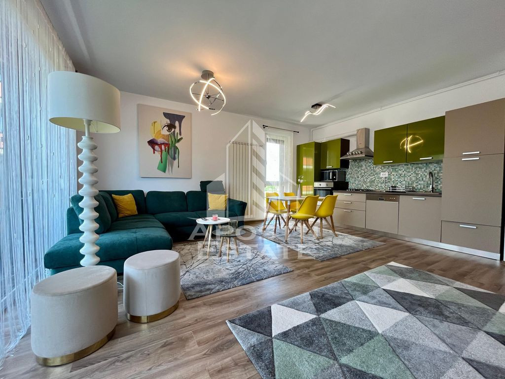 APOSTU ESTATE va propune spre inchiriere un apartament de lux cu 2 camere open space in Complexul Rezidential Iris, zona Calea Torontalului Imobilul se intinde pe o suprafata utila de 65mp si este compartimentat astfel: - hol de acces - living spatios - dormitor cu balcon propriu - camera speciala de dressing - bucatarie open space - baie cu cada - balcon deschis cu iesire din living Apartamentul este complet mobilat si utilat si dispune de: - Geamuri cu plase pentru insecte si rolete automatizate - Aer conditionat - Masina de spalat vase si de spalat haine - Incalzire prin pardoseala Vecinatati: - Spital Premiere - Arta in Nori Gradinita - OMW - Sala de fitness NextFit - Mijloace de transport in comun - Iulius Mall - Auchan Apartamentul dispune de loc de parcare inclus in pret. Nu se accepta animale de companie si sa se fumeze in incinta imobilului. Va asteptam cu drag la o vizionare! ID intern: CP2490648