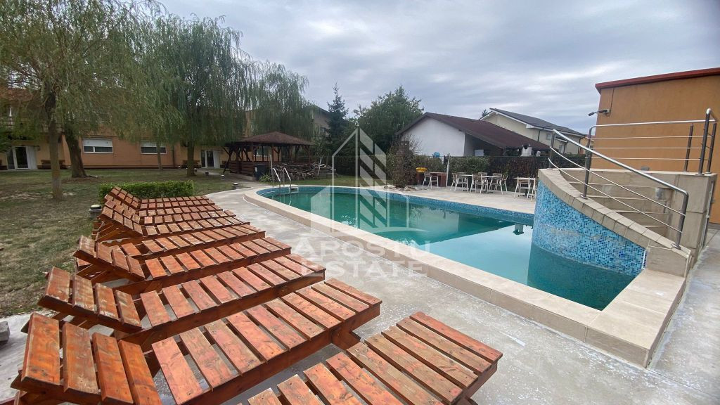 APOSTU ESTATE va propune spre inchiriere un apartament spatios si elegant, cu 3 camere, situat intr-o zona linistita si bine conectata din Dumbravita, ideal pentru familii sau persoane care doresc un spatiu generos si confortabil. Suprafata utila: 100 mp Compartimentare eficienta: Hol de acces generos Bucatarie complet mobilata si utilata, cu loc de luat masa Living luminos si spatios 2 Dormitoare matrimonial mobilat, unul dispune de baie proprie Baie principala cu cada Confort si facilitati: Centrala termica proprie pe gaz Aer conditionat Curte proprie Piscina Ciubar Sala fitness Loc de parcare subteran inclus in pret Apartamentul este complet mobilat si utilat Ideal pentru: Familii Cupluri Profesionisti care lucreaza remote sau au nevoie de birou acasa Pret chirie: 550€ + garantie Programeaza o vizionare! ID intern: CP2743747