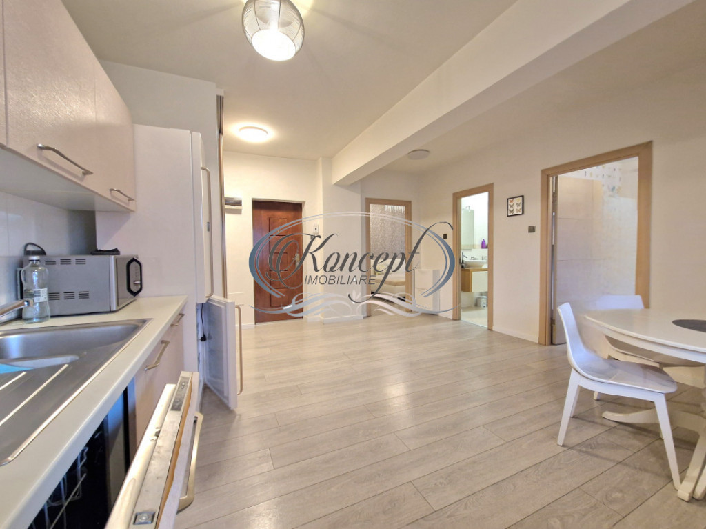 Koncept Imobiliare va ofera spre inchiriere un apartament modern, situat in cartierul Buna Ziua, in cadrul ansamblului rezidential Bonjour Residence, o zona apreciata pentru echilibrul dintre liniste, accesibilitate si facilitati urbane. Proprietatea este amplasata la parterul unui imobil cu regim de inaltime P+6, beneficiind de orientare estica si acces facil catre mijloacele de transport in comun, scoli, gradinite, magazine alimentare, LIDL, farmacii si restaurante. Apartamentul are o suprafata utila de 56 mp si este completat de o curte proprie generoasa de 56 mp, amenajata cu gazon si mobilier de exterior, precum si de o terasa acoperita de aproximativ 10 mp, ideala pentru relaxare in aer liber. Compartimentarea este eficienta si bine gandita, fiind compus din doua dormitoare, un living open space cu bucatarie, precum si o baie spatioasa, dotata cu cada si geam pentru ventilatie naturala. Locuinta se inchiriaza complet mobilata si utilata, oferind un nivel ridicat de confort. Bucataria este echipata cu plita electrica, cuptor, cuptor cu microunde, hota, frigider si masina de spalat vase, iar zona de utilitati include masina de spalat rufe cu uscator. Jaluzelele electrice, multiplele spatii de depozitare si finisajele moderne contribuie la un ambient placut si practic, adaptat unui stil de viata urban. Incalzirea este asigurata prin centrala pe bloc si calorifere. Un avantaj important il reprezinta locul de parcare exterior, inclus in pret, pozitionat chiar langa imobil. Curtea privata, compartimentarea echilibrata si pozitionarea intr-un ansamblu bine cotat diferentiaza aceasta proprietate pe piata chiriilor din Buna Ziua. Apartamentul este recomandat unui cuplu sau unei familii care isi doreste o curte proprie, confortul unui apartament modern si acces rapid catre punctele de interes ale orasului, intr-un cartier rezidential stabil si bine conectat. Pentru informatii suplimentare, programarea unei vizionari sau pentru a afla oferta noastra completa va stam la dispozitie telefonic, prin e-mail sau la sediul agentiei noastre, pe str. Aviator Badescu, nr. 19, Cluj-Napoca. Id intern: P21074