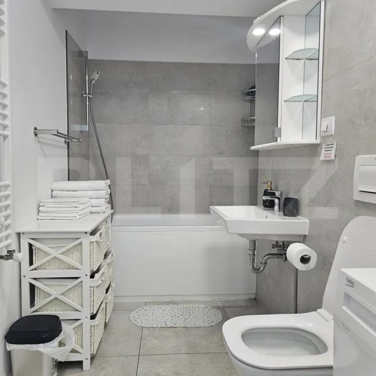 BLITZ propune spre închiriere un apartament modern, mobilat și utilat complet, amenajat cu mobilier de calitate, ideal pentru persoanele care își doresc confort și acces rapid către principalele puncte de interes din zonă. Apartamentul este amenajat într-un stil modern și practic, fiind dotat cu toate electrocasnicele necesare pentru un trai confortabil. Spațiul este luminos și bine organizat, oferind un ambient plăcut și funcțional. Bucătăria este complet utilată, baia este spațioasă și modern amenajată, iar zona de living/dormitor este mobilată astfel încât să ofere atât confort, cât și eficiență în utilizarea spațiului. Un avantaj important îl reprezintă parcarea privată cu barieră, accesul realizându-se pe bază de telecomandă. Imobilul este situat într-o zonă foarte bine poziționată, cu acces rapid către multiple puncte de interes: Grădina Zoologică, Parcul și Lacul Noua, precum și către principalele centre comerciale din apropiere: Dedeman, Selgros, Carrefour și Metro, toate aflate la strada principală. Condiții de închiriere: Contractul de închiriere se declară la ANAF și se încheie pe o perioadă minimă de 1 an La semnarea contractului se achită o lună de chirie în avans + garanție de 600 euro Nu se acceptă animale de companie Comision agenție: 50% + TVA din valoarea unei chirii. TVA-ul se aplică doar la comisionul agenției, nu la prețul chiriei. Pentru mai multe detalii sau programarea unei vizionări, vă invităm să ne contactați. Cod ofertă / ID BLITZ: P166732 Id intern: P166732