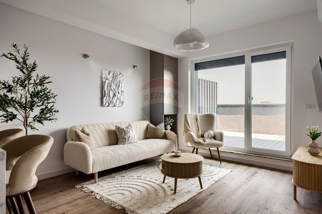 RE/MAX Dynamic vă propune spre închiriere un apartament super modern și primitor, aflat la prima închiriere, situat în complexul Adora, pe strada Cocorilor. Apartamentul este poziționat la etajul 11, ultimul etaj, oferind liniște, intimitate și o priveliște deschisă. Cu o suprafață utilă de 39 mp, completată de o terasă generoasă de 15 mp, ideală pentru momente de relaxare. Finisajele sunt moderne, de calitate superioară, iar apartamentul este complet utilat pentru un stil de viață confortabil. Dotările includ: - încălzire în pardoseală - aer condiționat - jaluzele electrice - mașină de spălat vase - mașină de spălat rufe cu uscător - videointerfon Acest apartament este alegerea ideală pentru cei care își doresc un spațiu elegant, cozy și funcțional, într-o zonă buna, cu acces facil către punctele de interes ale orașului.