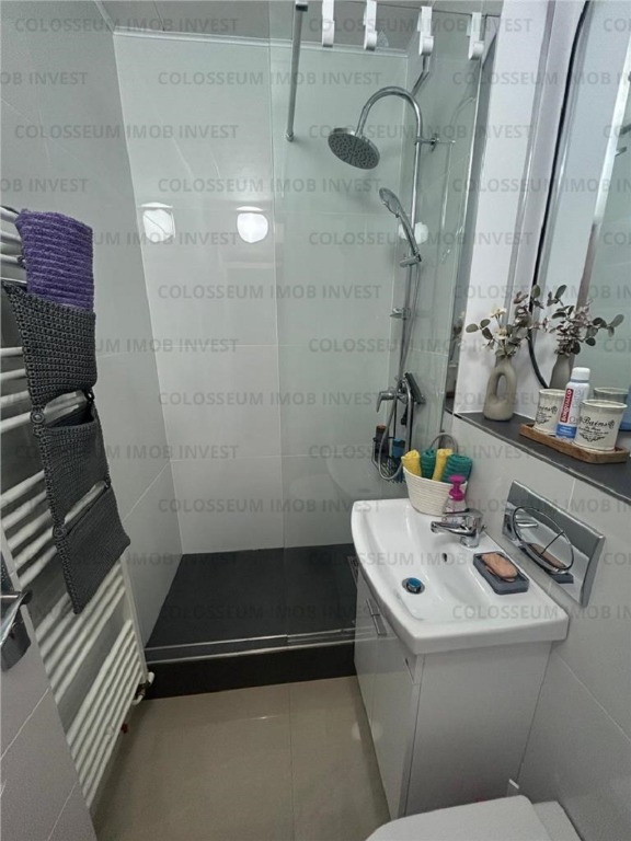 Baie elegantă, dotată cu duș walk-in și finisaje de înaltă calitate