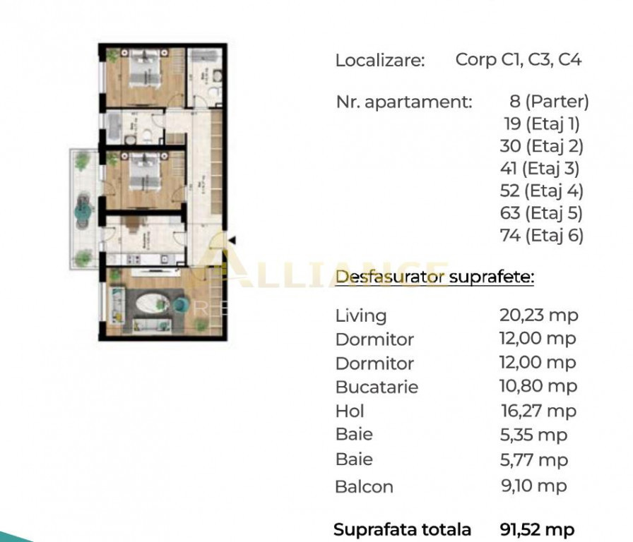 Apartament modern de 3 camere, 2 bai ndash; la doar 7 minute de Metrou Berceni! Suprafata generoasa de 91.52 mp, perfect compartimentata pentru confort si eleganta. Dormitor matrimonial cu baie proprie Total decomandat, ideal pentru familii sau cupluri care isi doresc spatiu si functionalitate Locatie excelenta ndash; aproape de scoli, gradinite, centre comerciale, mijloace de transport si sali de fitness Dotari premium: Lift modern Centrala termica Buderus Kit aer conditionat Incalzire in pardoseala Pret: 135.000 euro; (TVA inclus) Comision 0% Variante flexibile de plata Parcari disponibile: Exterioare ndash; 6.600 euro; (TVA inclus) Subterane ndash; 8.800 euro; (TVA inclus) Termen finalizare: iulie 2027 Contact: 0787 347 251 (WhatsApp disponibil) ndash; programeaza o vizionare!