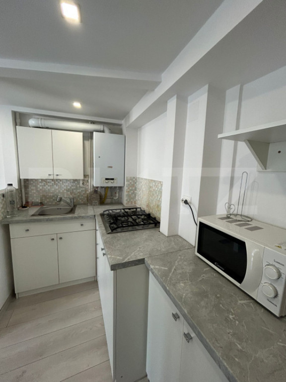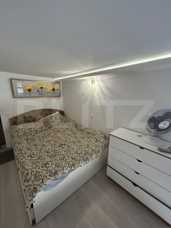 Blitz oferă spre închiriere un apartament deosebit cu 1 cameră, având o suprafață utilă de 30 mp, amplasat într-una dintre cele mai exclusiviste zone ale orașului – Piața Trandafirilor, în imediata vecinătate a principalelor puncte de interes. Proprietatea se remarcă printr-o compartimentare modernă, desfășurată pe două niveluri, gândită pentru a îmbina eficiența spațiului cu un plus de confort: la primul nivel este amenajată zona de zi, compusă din living elegant și bucătărie open-space complet echipată, iar la nivelul superior se află zona de noapte, ce include dormitorul și baia. Apartamentul beneficiază de finisaje de calitate, este complet mobilat și utilat, fiind pregătit pentru ocupare imediată. Conceptul pe două niveluri oferă un plus de intimitate și funcționalitate, adaptat stilului de viață urban. Poziționarea ultracentrală asigură acces rapid către restaurante, cafenele, instituții și zone de recreere, transformând această proprietate într-o alegere ideală pentru cei care își doresc confort și accesibilitate. Pentru detalii suplimentare sau programarea unei vizionări, echipa Blitz vă stă la dispoziție. Cod ofertă / ID BLITZ: P170465 Id intern: P170465