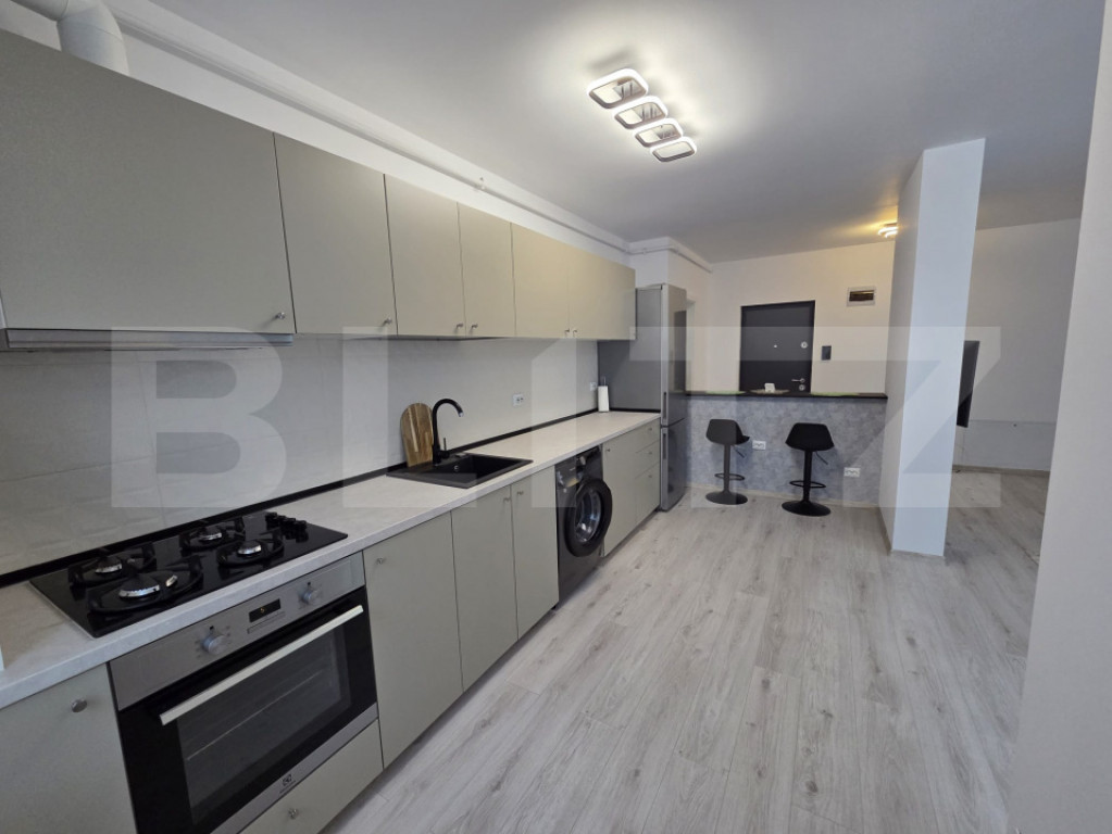 Apartament modern 2 camere + birou, parcare subterană – Florești, str. Cătanelor Închiriez apartament situat în Florești, pe strada Cătanelor, într-un bloc nou, cu lift și interfon, la etaj intermediar (etajul 2), cu orientare sudică, ceea ce oferă lumină naturală pe tot parcursul zilei. ???? Suprafață totală: 57,3 mp (54 mp utili) ???? Compartimentare modernă și funcțională: living luminos bucătărie separată, mobilată modern, cu sisteme soft-close dormitor zonă de birou dressing generos baie cu cabină de duș tip walk-in ???? Balcon / terasă acoperită, amenajată cu masă și scaune, cu două ieșiri (din living și dormitor) Apartamentul este aproape nou, fiind locuit doar 3 luni, complet mobilat și utilat modern: încălzire în pardoseală electrocasnice noi, toate aflate în garanție TV în fiecare cameră finisaje moderne și spații bine optimizate ???? Loc de parcare subteran - 7000 euro ???? Zonă excelentă, cu acces rapid la facilități: stație de autobuz în imediata apropiere farmacie, magazin alimentar, Profi, easybox chiar vis-a-vis locuri de joacă pentru copii școală în construcție, ideal pentru familii ???? Apartament ideal pentru o persoană, un cuplu sau o familie care își dorește un spațiu modern, luminos și confortabil, într-o zonă bine conectată. Cod ofertă / ID BLITZ: P162490 Id intern: P162490