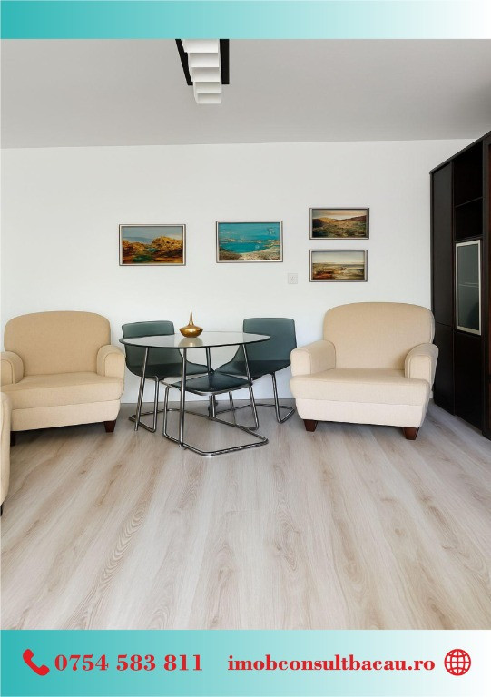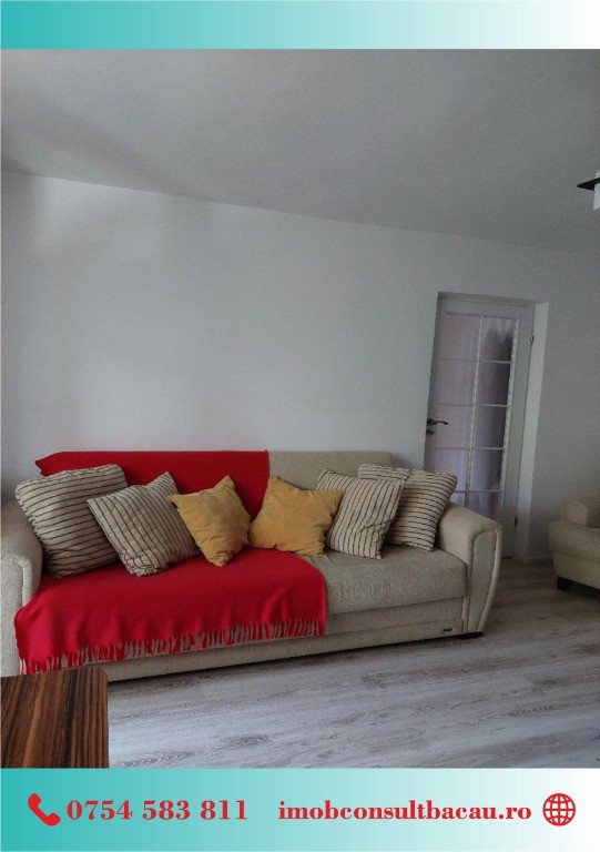Fii tu locatarul acestui apartament modern, complet mobilat si echipat, situat in zona Martir Horia! Ce oferă acest apartament? - Bucătărie modernă – dotată cu frigider, aragaz, cuptor și masă de mic dejun. - Living spațios – cu canapea din piele, măsuță de cafea din sticlă și spații de depozitare. - Dormitor confortabil – pat dublu, dulap încăpător și finisaje premium. - Baie elegantă – cadă, toaletă, chiuvetă și finisaje moderne. - Balcon – perfect pentru relaxare sau depozitare. - Hol primitor – cu spații de depozitare și un design modern. Imobilul se afla la etajul 3 al unui bloc cu 4 etaje din zona Neagoe Voda! Apartamentul este curat, luminos și gata de mutare imediată! Contactează-mă pentru detalii și vizionare! - Cosmin: 0754 583 811; - Corina: 0740 288 297, sau la sediul agenției noastre, Imob Consult Bacau, situat pe strada Banca Națională nr. 27 la intersecția cu Str. Neagoe Vodă, langa Irish Pub.