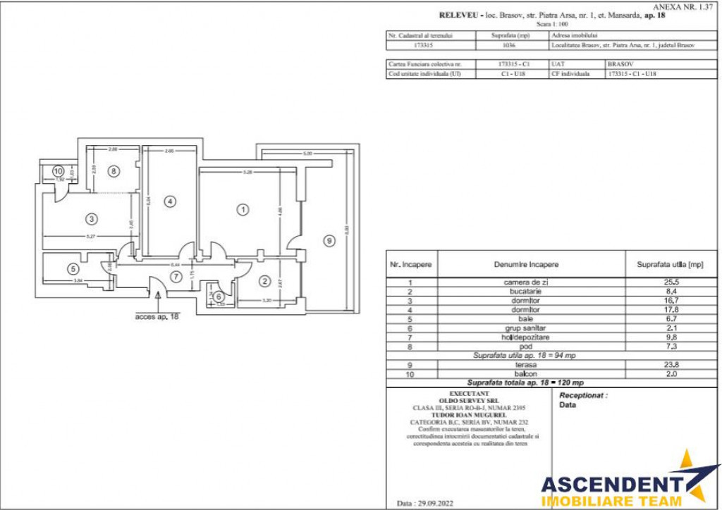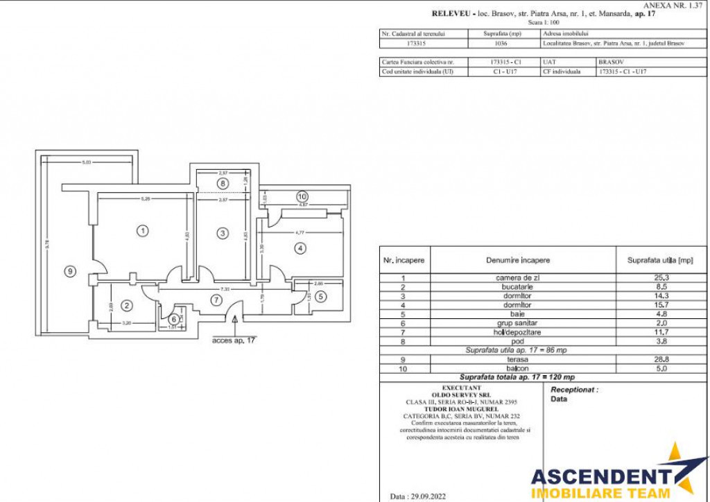 Comision chiriasi 50% TVA din prima luna , o singura data ! Ascendent Imobiliare va propune spre inchiriere in exclusivitate, apartament cu 3 camere , suprafata de 94 mp util, constructie noua, nelocuita, situat in cartier Bartolomeu, in complexul rezidential UNO. Link tur virtual : https://my.matterport.com/show/?m=H6bTmb4ya9y Imobilul este situat la etajul 2 ce detine o vedere deosebita, se inchiriaza mobilat si utilat cu electrocasnice noi de ultima generatie in garantie , mobilier de bucatarie facut la comanda. Proprietatea este compartimentata cu 3 camere decomandate cu 2 bai ,bucatarie, terasa mare de 24 mp si balcon micut cu iesire din dormitor, Situat in Bartolomeu Nord, ai acces rapid la magazinele alimentare, magazine de bricolaj, gradinite si scoli, si cel mai important, te vei afla la doar 7 kilometri de noul aeroport din Brasov. Complexul detine locurile de joaca pentru copii sunt cele mai populare locuri unde cei mici se pot juca, dezvolta si comunica, iar pe final de zi somnul dulce sa-i fure, oferindu-le parintilor un moment pentru sine. Rezidenta detine loc de parcare privata, in imediata apropiere a blocului si boxa, la demisolul blocului, in suprafata de 14,4 mp. Disponibilitate de inchiriere imediata ! Consilier specializat pe aleasa oferta: domnul Anghel Livius Telefon/ WhatsApp: 0767 465 686 Detalii, fotografii suplimentare si alte variante similare exclusive: www.ascendentimobiliare.ro.