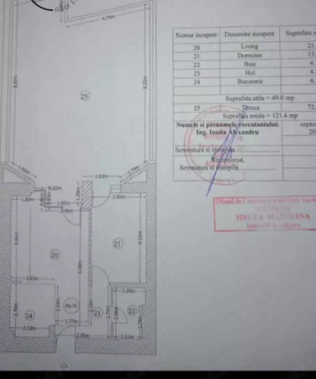 • Compartimentare: 1 bucătărie, 1 living, 1 dormitor, 1 băie, 1 hol, 1 terasa