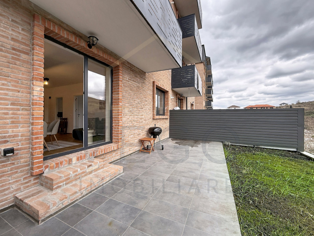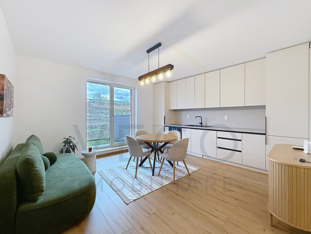 VEGO IMOBILIARE vă prezintă spre vânzare și vă stă la dispoziție cu acest apartament de 2 camere, poziționat la parterul unui imobil nou, dispus pe 4 etaje, situat în incinta ansamblului Beta Residence Chinteni. Locuința se desfășoară pe o suprafață utilă de 45 mp, completată de o terasă generoasă de 23 mp, care se continuă cu o grădină proprie de 24 mp, se vinde complet finisată, mobilată și utilată, inclusiv cu mașină de spălat vase, conform fotografiilor de prezentare, în rândul dotărilor menționăm pardoseală cu parchet laminat, uși interioare din lemn, ușă metalică la intrare, videointerfon, iar confortul termic este asigurat pe tot parcursul anului de centrala termică individuală cu sistem de încălzire prin pardoseală. De asemenea, în prețul vânzării, apartamentul beneficiază de un spațiu de depozitare tip boxă, situat în podul imobilului. Compartimentarea este astfel: – 1 cameră de zi + 1 bucătărie open-space cu acces spre terasă/grădină - 1 dormitor - 1 baie - 1 dressing/debara - 1 hol Opțional, se poate achiziționa și un loc de parcare, situat în garajul subteran (-1), la prețul de 10.000 euro. Ocupabil imediat. Pentru orice alte informații, sau pentru stabilirea unei vizionări, nu ezitați să ne contactați, iar un reprezentant al agenției vă stă la dispoziție cu toate detaliile necesare! Preț: 124.900 euro. ID: S389 Id intern: P241452