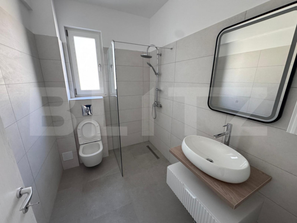 BLITZ vă propune spre închiriere un apartament nou, situat ultracentral în Târgoviște, ideal atât pentru locuință, cât și pentru activități profesionale. Apartamentul este amplasat la parterul unui bloc nou, ultramodern, finalizat în 2025, într-o zonă excelentă . Proprietatea se remarcă prin finisaje moderne, încălzire în pardoseală și compartimentare practică, oferind confort și flexibilitate pentru amenajare. Fiind nemobilat, spațiul oferă libertatea de a fi amenajat după preferințe, fiind potrivit atât pentru locuit, cât și pentru birou, cabinet sau reprezentanță. Detalii proprietate: Suprafață utilă: 75,1 mp Balcon: 4,8 mp Compartimentare: 3 camere, baie, WC de serviciu Etaj: parter Caracteristici și dotări: Bloc nou, finalizat în 2025 Compartimentare decomandată Finisaje moderne (parchet, tâmplărie QFort) Centrală termică proprie Încălzire în pardoseală Apartament nemobilat – ideal pentru personalizare Loc de parcare privat inclus în preț Disponibilitate imediată Avantaje zonă: Poziționare ultracentrală, lângă Judecătoria Târgoviște Vizibilitate foarte bună pentru activități comerciale sau profesionale Acces rapid către instituții publice, transport și Piața 1 Mai Zonă liniștită și sigură Pentru mai multe detalii sau pentru programarea unei vizionări, contactați echipa BLITZ. Cod ofertă / ID BLITZ: P166400 Id intern: P166400