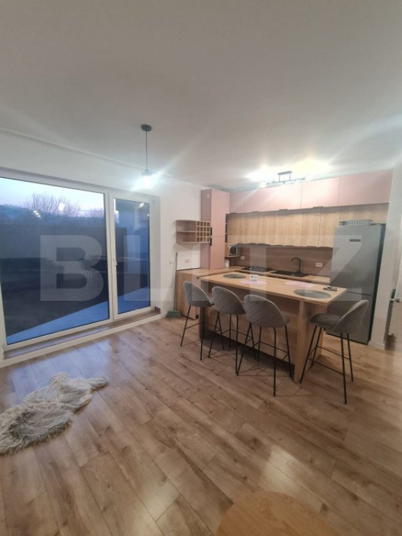 De vanzare apartament nou, semidecomandat, gradina si terasa de 97 mp, garaj subteran. Imobilul se preda complet mobilat si utilat, este amplasat la parterul unui bloc din caramida izolat termic la exterior, bloc situat in zona cu acces facil catre oras, la mica distanta de statia de autobuz M21 si la cateva minute de mers pe jos de Parcul Poligon. Apartamentul dispune de centrala termica proprie, tamplarie PVC cu gem termopan, usa metalica la intrare si este compus din: hol, living cu bucatarie open space, dormitor si baie. Locul de parcare subteran este optional si se poate achizitiona la pretul de 7.500 euro. Pentru mai multe detalii nu ezitati sa ne contactati. Cod ofertă / ID BLITZ: P141074 Id intern: P141074