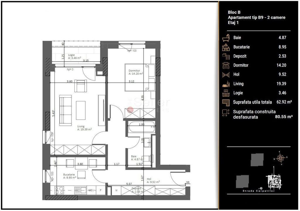 LOCALIZARE: Acest imobil este situat in proiectul Cosmopolit Zenit, un ansamblu rezidential modern, construit cu atentie la detalii si finisaje de inalta calitate, unde design-ul elegant si arhitectura contemporana se imbina perfect. Proiectul se afla la intrare in Racadau, in imediata apropiere a Centrului Comercial Magnolia. COMPARTIMENTARE: - Hol de acces, cu o suprafata generoasa; - Zona de zi, ce detine suprafete vitrate mari si acces catre balcon; - Bucataria, care este inchisa; - Dormitor, luminos si spatios; - Baie, cu aerisire ventilata. DOTARI: - centrala termica pe intregul bloc; - tamplarie PVC, ferestre cu vitraj termoizolant alcatuite din 3 foi de sticla; - termoizolatie exterioara cu vata bazaltica de 15 cm; - usa de intrare metalica; - incalzire prin pardoseala; - parchet stratificat; - ceramica rectificata portelanata; - bai echipate. PARKING: Optional, se poate achizitiona un loc de parcare subteran la pretul de 20.000 EURO + T.V.A. STORAGE: Boxele de depozitare se achizitioneaza separat, incepand cu 2.000 EURO/mp + T.V.A. FINALIZARE: Complexul este in constructie, termenul de finalizare pentru acest bloc fiind IUNIE 2026. IMPREJURIMI: Imobilul este situat intr-o zona de blocuri, accesul auto, pana in zona de centru a orasului, facandu-se in cca. 7 minute. ATRACTII ZONA: Complexul va beneficia de sala de fitness, cafenele, restaurante si o zona verde generoasa. ACCESIBILITATE: Transport public în apropiere. NOTA: Comision 0% La pretul afisat se adauga T.V.A. 21%. Informatiile prezentate reflecta situatia reala a proprietatii, fara a constitui o oferta contractuala. Aceste date au fost obtinute verbal, de la titularul de drept al imobilului. Structura acestei prezentari nu poate fi reprodusa, fara acordul scris al The Seller and Partners.