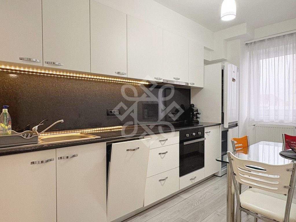 D`Art imob va ofera spre inchiriere un apartament nou cu 2 camere, situat pe strada Lapusului din Oradea. Acesta se afla la etajul 3/7 al unui bloc nou, izolat termic la exterior si dotat cu lift modern. Locuinta este decomandata si masoara o suprafata utila de 52 mp. Se compune din hol de acces, living spatios cu balcon deschis de 9 mp, dormitor, bucatarie complet utilata, baie cu cada. Apartamentul dispune de aer conditionat, mobilier modern si confortabil, spatii pentru depozitare generoase, incalzire de la reteaua de termoficare contorizata individual. Viitorii chiriasi vor beneficia de electrocasnice precum: TV, aer conditionat, plita+cuptor electrice, hota, aparat de cafea , cuptor cu microunde, combina frigorifica, masina de spalat vase, masina de spalat rufe, aspirator, fier de calcat, masa de calcat, uscator suport rufe, video interfon. La subsolul cladirii proprietarul pune la dispozitie un loc de parcare privat, inclus in pretul de inchiriere. In apropiere se afla centre comerciale, statii ale mijloacelor de transport in comun, zone verzi, zona centrala. Pretul pentru acest apartament nou cu 2 camere de inchiriat este de 470 euro. ~~~~~~~~~~~~~~~~~~~~~~~~~~~~~~~~~~~~~~~~~~~~~~~~~~~~~~~~~~~~~~~~~~~~~~~~~~~~~~~~~~~~~~~~~~~~~~~~~~~~~~~~~~~ D`Art imob offers you for rent a new 2-room apartment, located on Lapusului Street in Oradea. It is located on the 3rd/7th floor of a new block of flats, thermally insulated on the outside and equipped with a modern elevator. The home is detached and measures a usable area of 52 sqm. It consists of an entrance hall, spacious living room with an open balcony of 9 sq m, bedroom, fully equipped kitchen, bathroom with bathtub. The apartment has air conditioning, modern and comfortable furniture, generous storage spaces, heating from the district heating network individually metered. Future tenants will benefit from appliances such as: TV, air conditioning, electric hob + oven, hood, coffee maker, microwave oven, refrigerator, dishwasher, washing machine, vacuum cleaner, iron, ironing board, clothes dryer, video intercom. In the basement of the building the owner provides a private parking space, included in the rental price. Nearby there are shopping centers, public transport stations, green areas, the central area. The price for this new 2-room apartment for rent is 470 euros. Id intern: P1157
