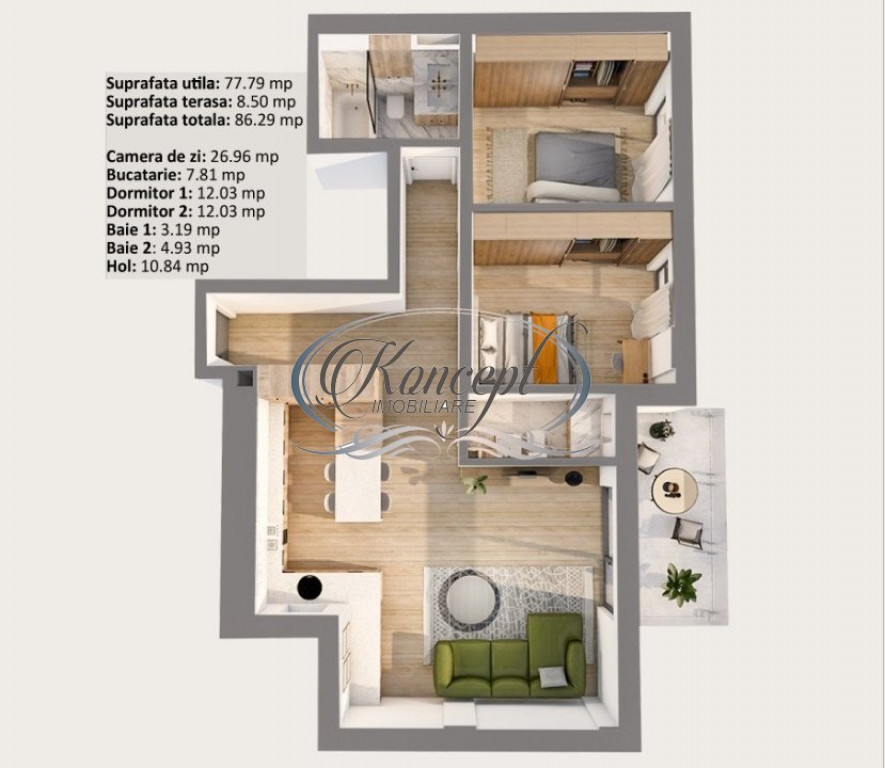 Suprafața utilă 77 m²