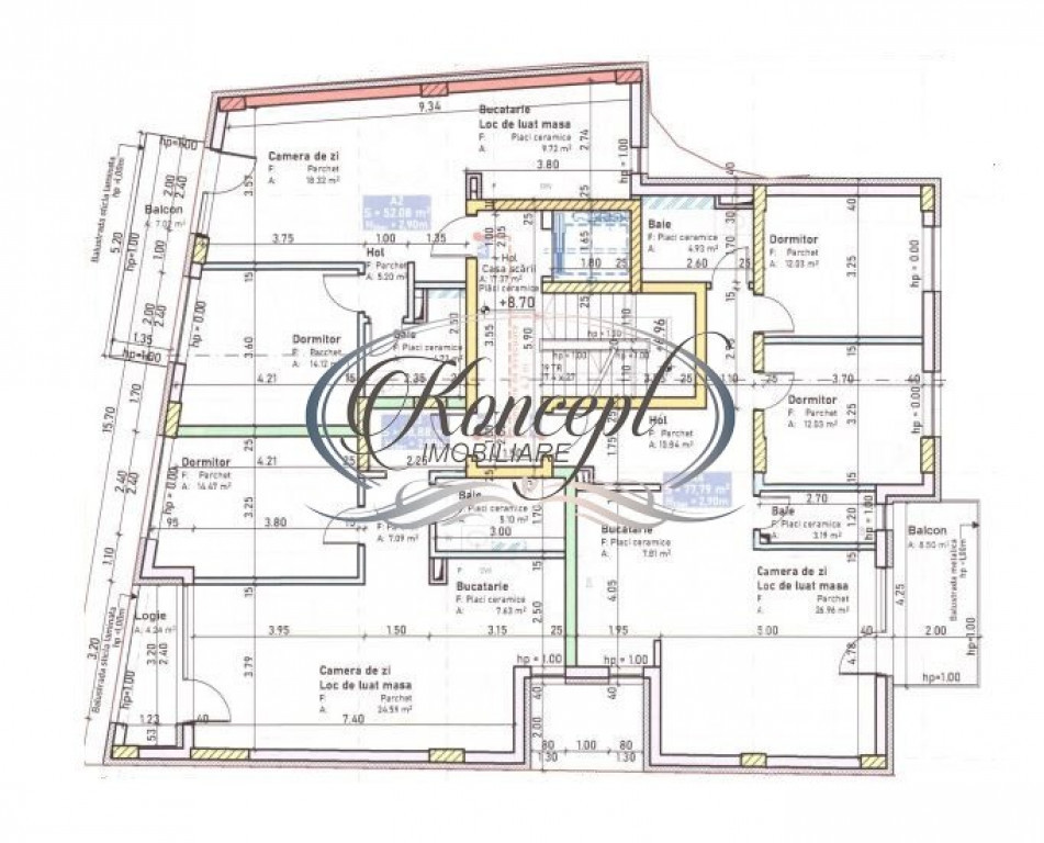 Koncept Imobiliare va ofera spre vanzare un apartament cu 3 camere intr-un imobil nou, situat in zona Semicentrala, in imediata apropiere a Pietei Mihai Viteazu. Acesta este situat la etajul 2, are suprafata de 77,8 mp utili plus un balcon de 8,5 mp si este compartimentat in: living open space cu bucataria si loc de servit masa, 2 dormitoare, 2 bai si balcon. Cladirea este una moderna ce indeplineste toate standardele actuale nZEB, cu termoizolatie de 15 cm, tamplarie PVC 7 camere, tripan, bagheta calda si filtru de protectie solara, sistem de incalzire in pardoseala Rehau, dispozitive de contorizare separate a consumului individual/apartament, usa metalica antiefractie, cu izolare termica si fonica, inchidere in 6 puncte, balcoane si terase finisate cu granit si sticla securizata, interfata smart de control a temperaturii interioare etc. De asemenea, se poate achizitiona un loc de parcare subteran la pretul de 20.000 euro+tva. Apartamentul se recomanda datorita locatiei foarte bune, dar si al calitatii constructiei si a facilitatilor pe care le ofera. Pentru informatii complete, pentru programarea unei vizionari sau pentru a afla oferta noastra completa nu ezitati sa ne contactati telefonic, prin email sau la sediul agentiei noastre pe strada Aviator Badescu nr. 19, Cluj-Napoca Id intern: P19780