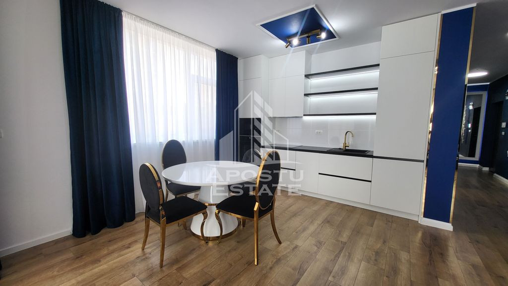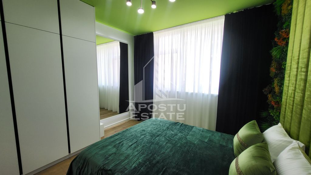 Apostu Estate va propune spre inchiriere un apartament open space,cu 2 camere,in Calea Aradului. Apartamentul este disponibil la etajul 1,intr-un ansamblu rezidential premium si se desfasoara pe o suprafata utila de 59 mp. Compartimentare: -hol acces spatios. -dormitor. -baie mare cu cada si geam. -living open space cu bucataria si loc de luat masa. -balcon deschis(3 mp). Confortul termic se realizeaza prin intermediul centralei pe gaz si al climei,incalzirea este in pardoseala,si al panourilor solare instalate pe bloc. Acesta beneficiaza de un loc de parcare subteran si boxa proprie trecute in Cf,cat si un buncar. Amenajat modern si atent la detalii,cu un design spectaculos,dispune de luminozitate naturala,finisaje ultramoderne,mobilier si aparatura de inalta calitate pentru a oferi un confort sporit. Complet utilat si mobilat totul nou. Complexul este amenajat cu spatiu verde si lifturi de ultima generatie. In apropiere se afla Iulius Town,supermarketuri,statie,la doar 10 minute de Centru. Va asteptam cu drag la o vizionare!