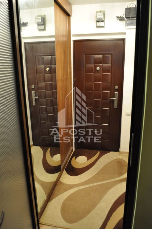 APOSTU ESTATE va propune spre vanzare un apartament spatios cu o camera, situat in zona Take Ionescu. Apartamentul este amplasat la etajul 8 intr-un imobil cu 10 etaje si lift. Confortul termic se realizeaza prin intermediul retelei de termoficare a orasului si a aparatului de aer conditionat. In hol si baie incalzirea este electrica cu sistem de incalzire in pardoseala. Exista posibilitatea montarii centralei proprii pe gaz. Instalatia electrica este schimbata integral pe cupru, la fel si cea sanitara si de incalzire. Cu o suprafata utila de 35mp, este compartimentat astfel: - hol acces cu spatii pentru depozitare - camera mare cu loc pentru canapea si pat dublu - bucatarie inchisa - balcon inchis in geamuri termopan si izolat Apartamentul se vinde complet mobilat si utilat cum se vede in imagini. Este o proprietate ideala pentru investitie deoarece poate fi achizitionata cu preluare de chiriasi. Va asteptam cu drag la o vizionare!