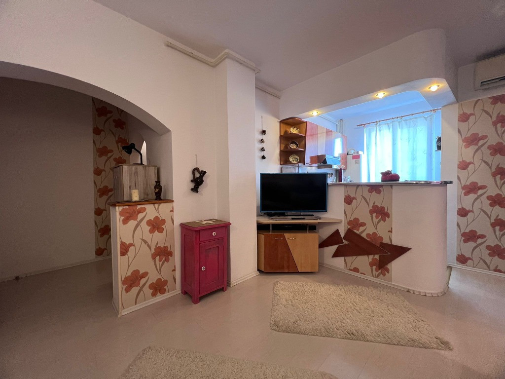 Geen House va propune spre vanzare un apartament spatios, cu o camera, intr-un bloc de caramida si stalpi de beton,in zona Gojdu, apropape de Scoala nr.4 Andrei Saguna. Apartamentul prezinta finisaje de calitate si mobilier in stare foarte buna. Compartimentare imobil: - hol de acces - living generos cu bucatarie open-space - dormitor - baie cu geam si cada - camara cu geam - debara spatioasa Dotari: - centrala termica - aer conditionat - usa din lemn la intrare - usi interioare din lemn - termopan cu tamplarie PVC - parchet, gresie si faianta - sistem electric si sanitar refacute in totalitate Apartamentul se vinde mobilat/ utilat, cum se vede in fotografii. COMISION CUMPARATOR 0% Contacteaza-ne pentru a programa o vizionare.