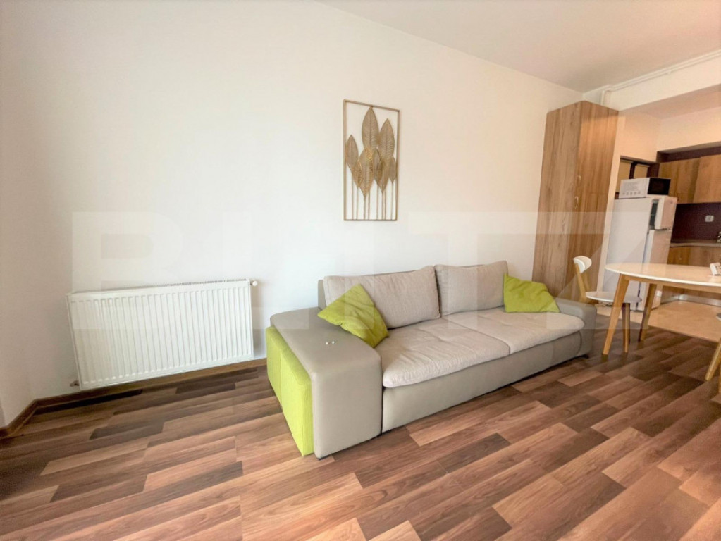 Blitz iti propune spre inchiriat un apartament cu o camera, open space, in cartier Iris, zona strazii Maramuresului. Este un apartament situat la parterul unui imobil a carei constructie a fost finalizata in anul 2015, cu regim de inaltime P+3 si dispune de o suprafata utila de 45 mp. Compartimentarea este semidecomandata, si beneficiaza si de 1 balcon. Interiorul este amenajat astfel incat sa amplifice spatiul fiecarei incaperi prin optiunea de a pastra obiectele strict necesare fiecarei zone. Apartamentul este finisat si mobilat modern, cu dotari precum: centrala termica proprie, geamuri termopan cu tamplarie PVC si usa metalica la intrare. Apartamentul se preda exact ca in fotografii, se poate opta pentru un loc de parcare subteran, contra cost, 60€. Te astept la vizionare! Cod ofertă / ID BLITZ: P44843 Id intern: P44843