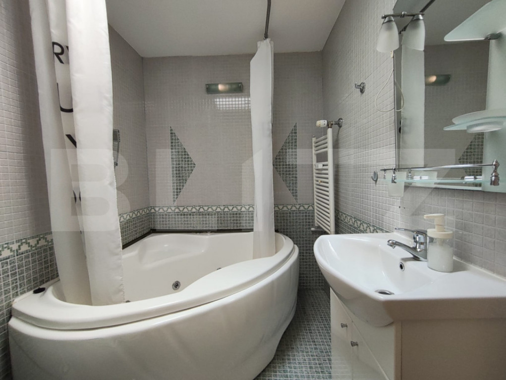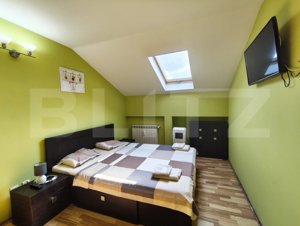 Etaj: doua dormitoare, baie cu jacuzzi, dressing mare si spatiu de depozitare.