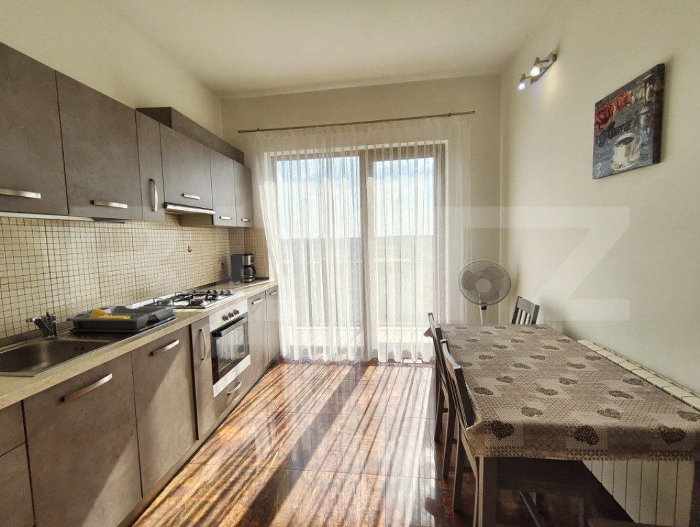 -Parter: bucatarie individuala complet utilata (combina frigorifica, cuptor incorporat, plita, hota, cuptor cu microunde, cafetiera, sandwich maker) cu iesire in balcon;
