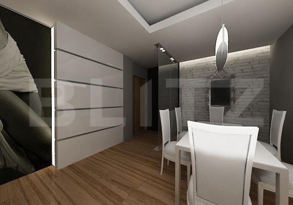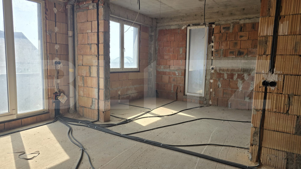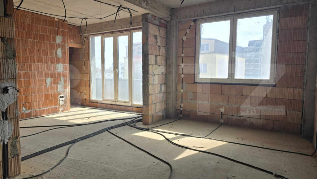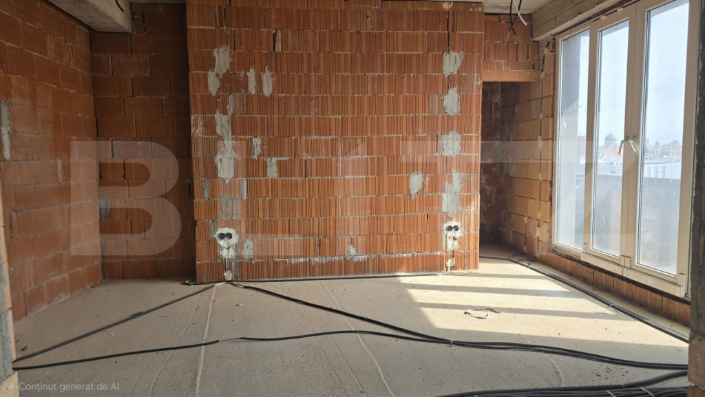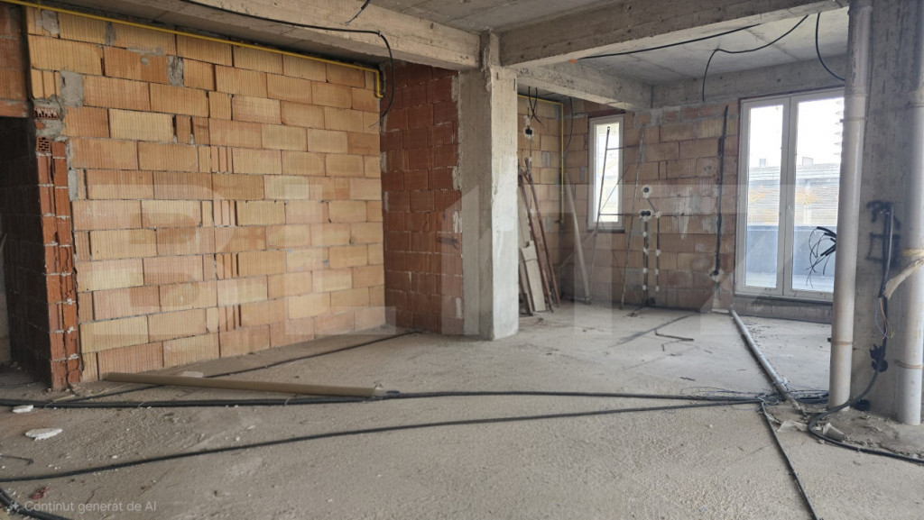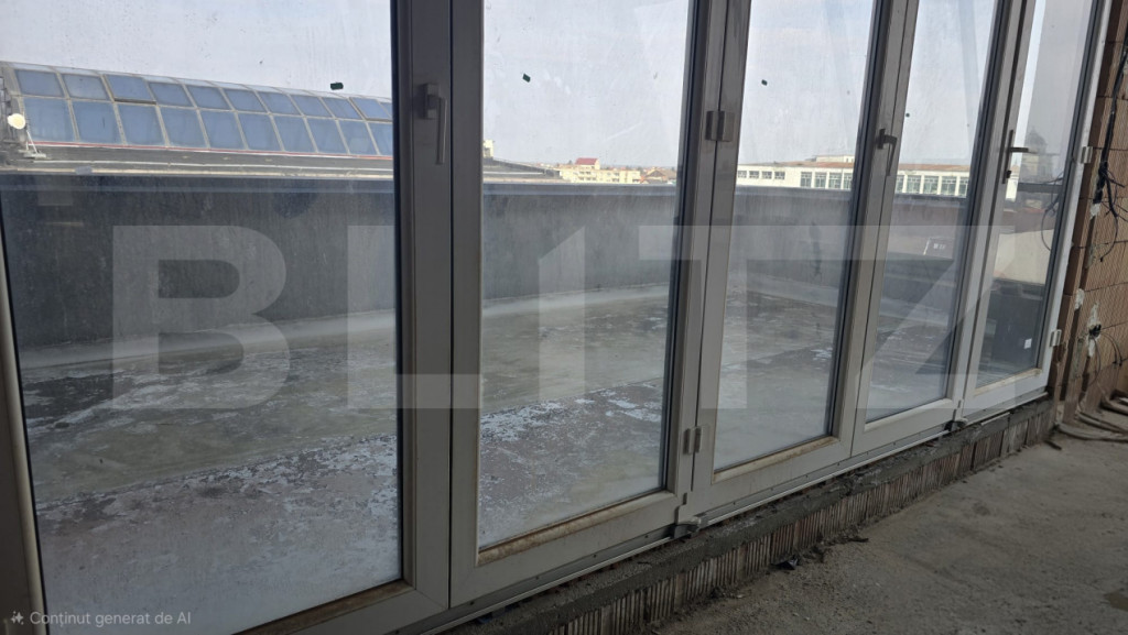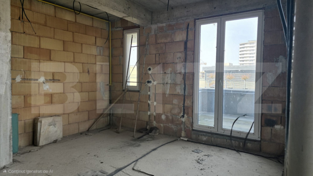 Blitz prezintă spre vânzare un apartament tip penthouse, cu 3 camere, situat într-o zonă atractivă, ideal pentru cei care își doresc un spațiu modern și personalizabil. Proprietatea dispune de o bucătărie open space, prevăzută cu ieșire directă pe un balcon cochet, perfect pentru a savura cafeaua de dimineață sau micul dejun în aer liber. Livingul este generos și luminos, cu acces către o terasă impresionantă de aproximativ 40 mp, ideală pentru relaxare, servirea mesei sau petrecerea timpului cu familia și prietenii. Ieșirea spre terasă se realizează printr-o ușă retractabilă spectaculoasă, cu deschidere de 4,5 m, care oferă continuitate între interior și exterior. În plus, livingul include un spațiu special dedicat amenajării unei grădini indoor, aducând un plus de natură și rafinament locuinței. Dormitorul matrimonial este conceput pentru confort maxim și beneficiază de o baie foarte spațioasă, unde se poate amenaja atât duș, cât și cadă free-standing, completate de un geam generos pentru lumină naturală. Alternativ, acest spațiu poate fi recompartimentat, oferind posibilitatea amenajării unui al doilea dormitor. Apartamentul se predă la stadiul de „roșu”, ceea ce reprezintă un avantaj major pentru viitorii proprietari, oferindu-le libertatea de a-și personaliza complet compartimentarea și designul interior după propriul gust și stil. O proprietate unică, ideală pentru cei care caută un cămin modern, spațios și adaptabil nevoilor personale. Cod ofertă / ID BLITZ: P168353 Id intern: P168353